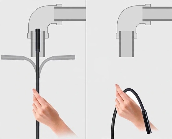 Остання модель водонепроникної оглядової камери оснащена можливістю фотографування за допомогою кнопки керування, яка також регулює інтенсивність 6 світлодіодів. Камера розміщена на 5 м жорсткому кабелі з додатковими кінцями - гачком, магнітом і дзеркалом під кутом 45 градусів. Завдяки цьому ви можете легко дістатися та оглянути важкодоступні місця.