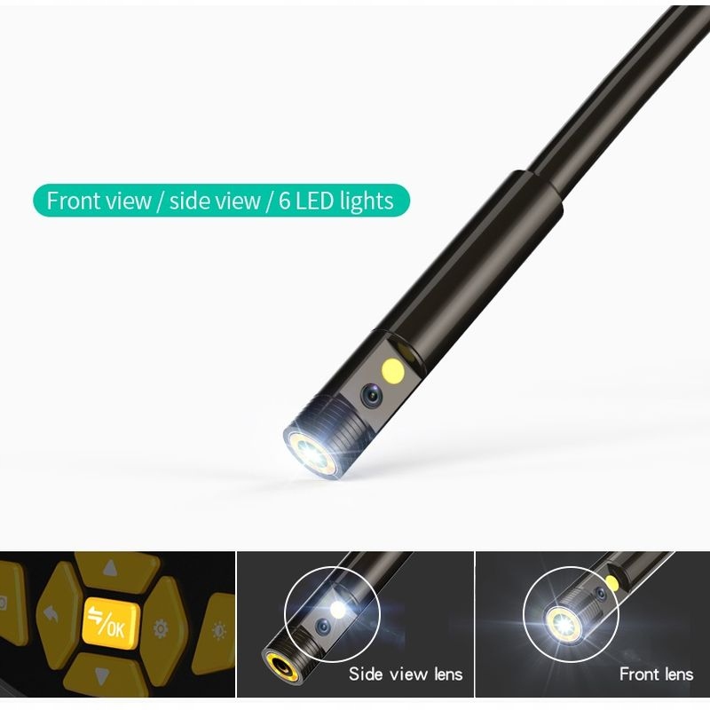 У порівнянні з іншими моделями, ендоскоп оснащенийподвійним камеразі світлодіодним підсвічуванням. Просто перемкніть дисплей на перегляд спереду або збоку об'єкта.