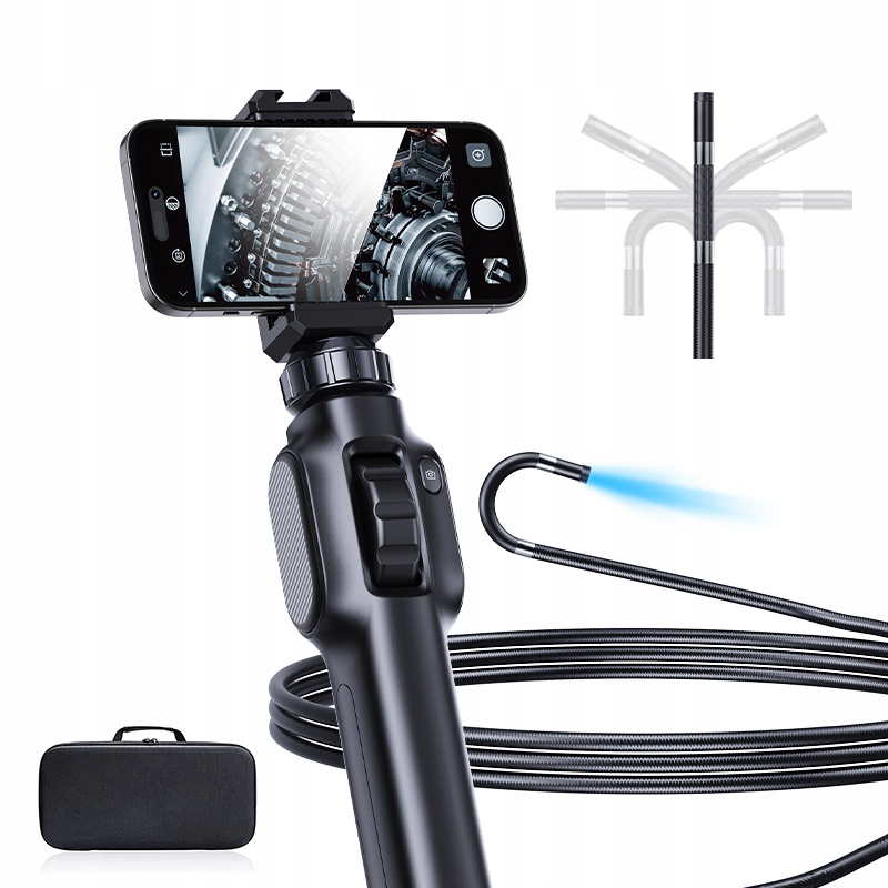 - Обертається на 360 градусів і керована кабельна головка, на кінці якої знаходиться камера з об’єктивом діаметром 8,5 мм