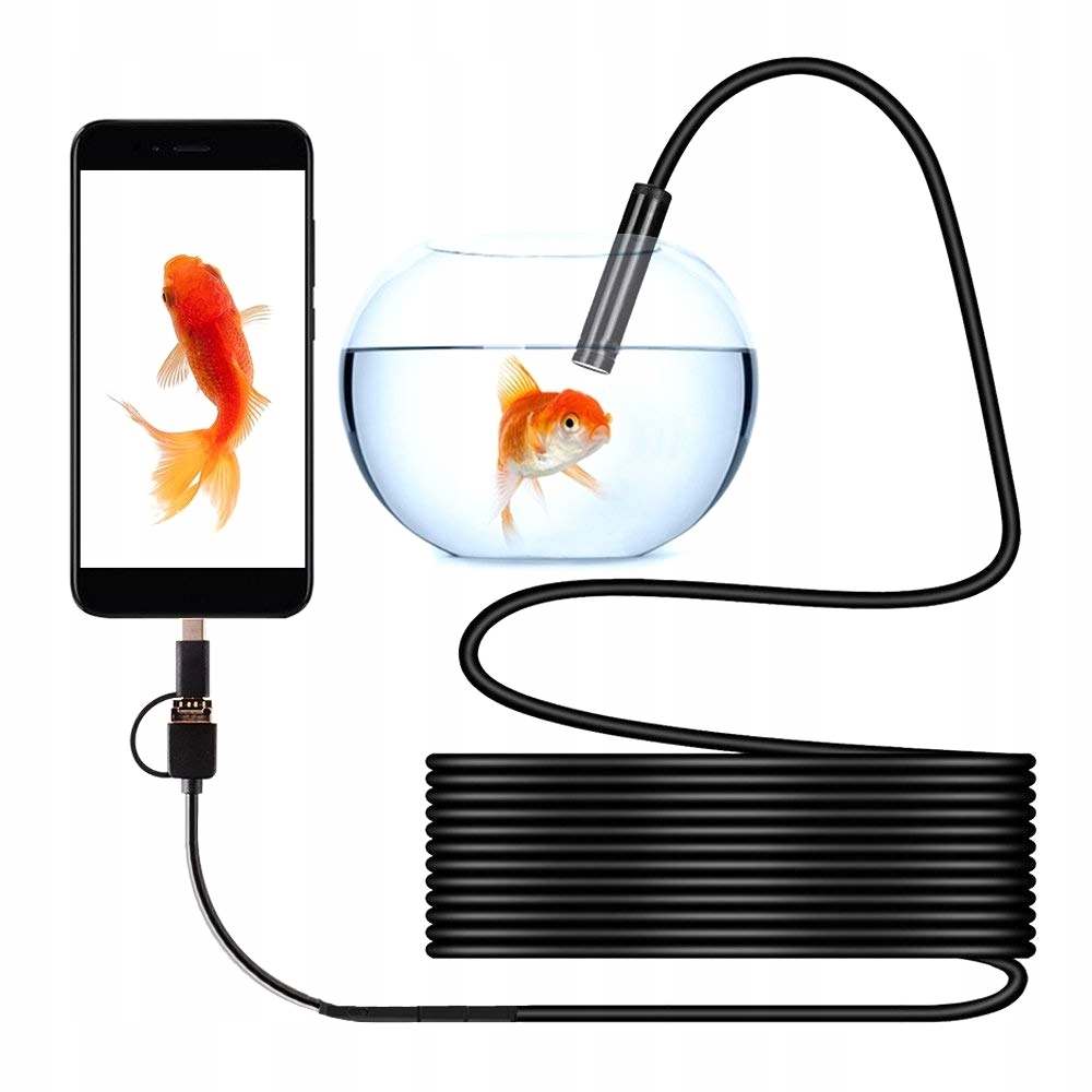 Оглядова камера високої роздільної здатності Uroute. Використовуючи його, ви побачите місця, недоступні іншим способом. Камеру можна підключити до телефону/планшета Android (сумісного зі стандартом OTG) за допомогою роз’ємів micro USB і USB-C або комп’ютера USB. Камера має вбудоване світлодіодне освітлення з регульованою яскравістю.