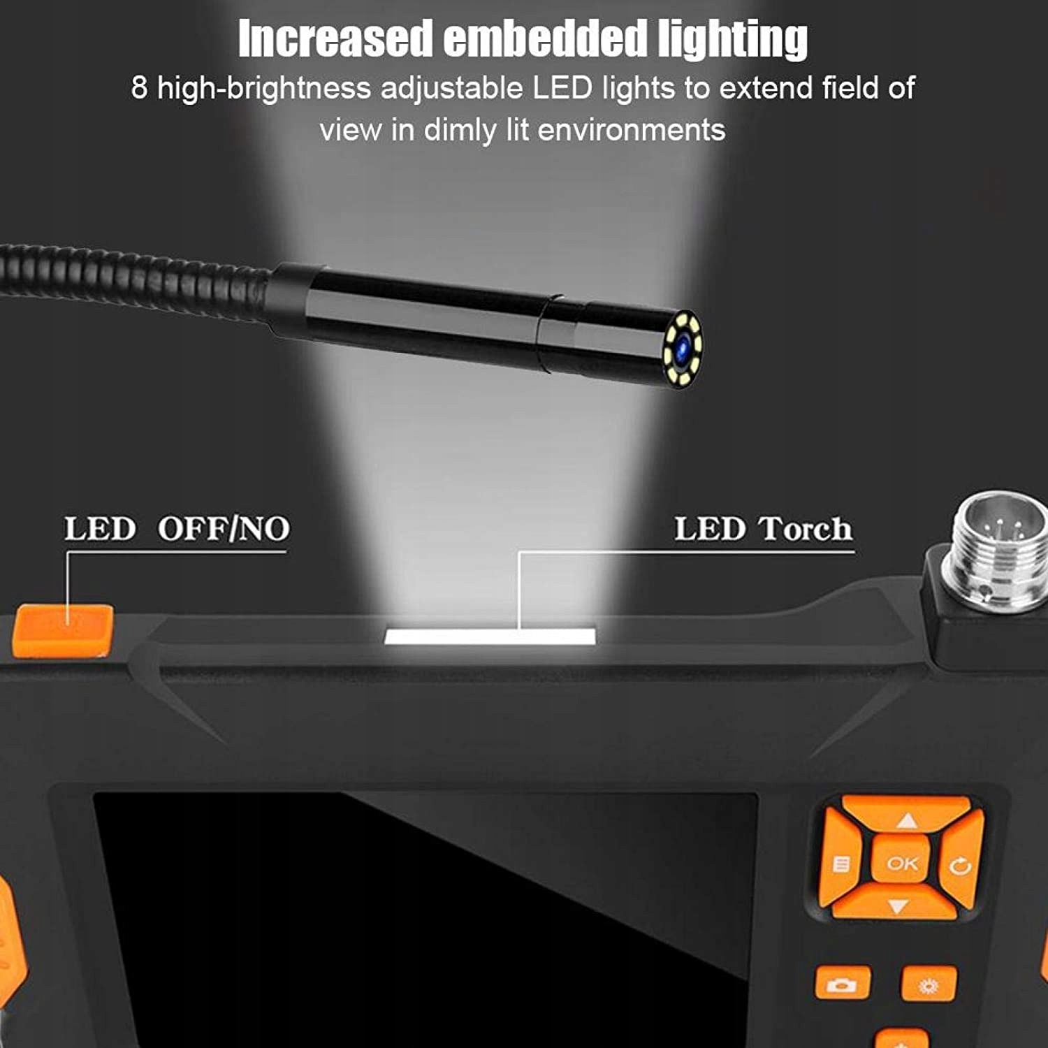 Покращене вбудоване освітлення 8 регульованих світлодіодів високої яскравості для розширення поля огляду в місцях із слабким освітленням. 43-дюймовий кольоровий РК-дисплей з роздільною здатністю камери 1920 x 1080P більш зручний для спостереження. Акумулятор на 2600 мАг має тривалий час автономної роботи і забезпечує 57 годин роботи. Фокусна відстань 4CM500CM Горизонтальний кут огляду 70° із широким полем огляду та чітким зображенням. Водонепроникний IPX67, не боїться ерозії від поту та дощу, можна використовувати у воді.