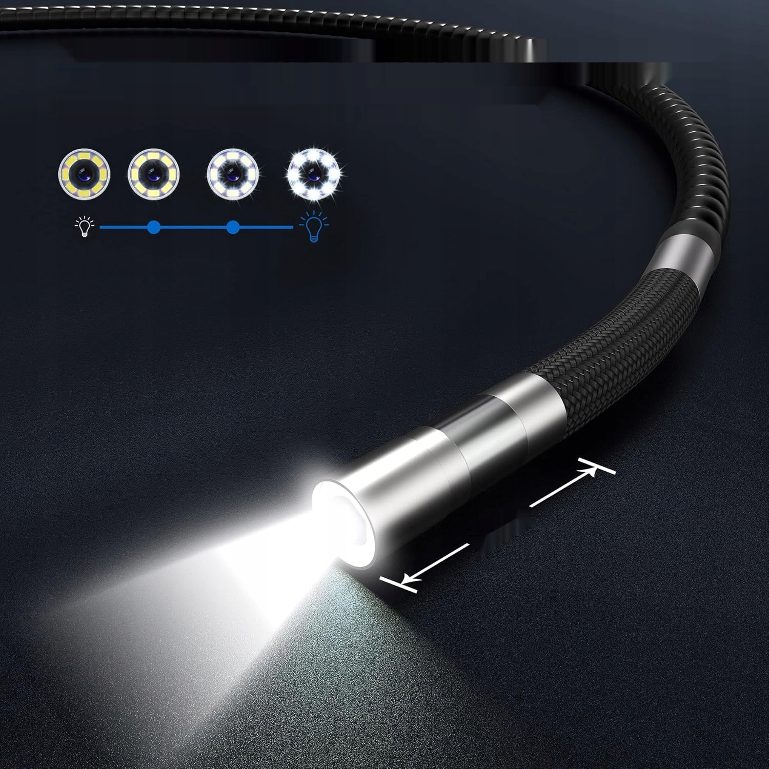 - Високоякісна змійна камера: Напівпрофесійний кабель з довжиною 1 метр дає можливість надати йому різні форми. Камера пропонує кут перегляду 70 ° та діапазон фокусування від 40 мм до 70 мм.