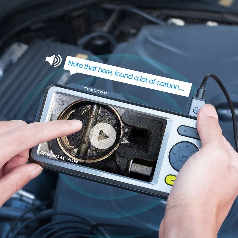 Ендоскоп TESLONG, діаметр зонда: 5 мм, довжина кабелю 5 м, запис зображення та звуку, водонепроникність IP67, потужний ліхтарик, 5-дюймовий дисплей IPS HD, бічна лінза