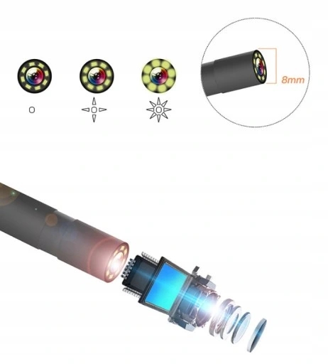 - Зонд з камерою діаметром 8 мм і підсвічуванням 8 світлодіодами