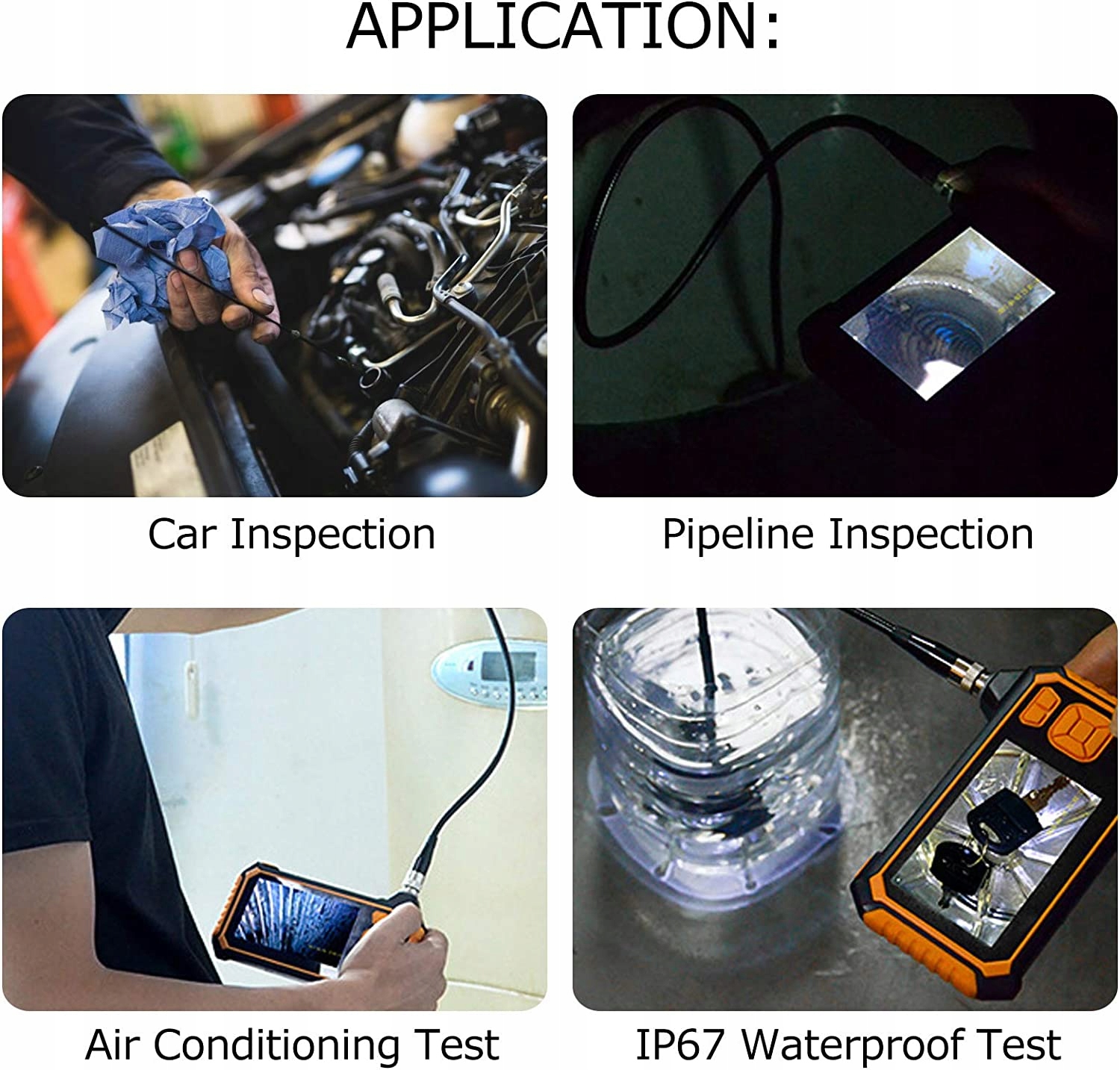HD CAMERA u2014 Ендоскопічна камера високої роздільної здатності 1080P із 43-дюймовим РК-екраном дозволяє миттєво переглядати фотографії та відео високої роздільної здатності. ВЕЛИКА ЄМНІСТЬ Ємність акумулятора 2600 мАг Час роботи від акумулятора приблизно 3 години з функцією захисту екрана встановіть інтервал вимкнення екрана. БОКОВА КАМЕРА Бічна камера фіксує чіткіші зображення, ніж кріплення бокового дзеркала на основі відбиття світла. 6 світлодіодів Завдяки 6 регульованим світлодіодам він може забезпечити чітке зображення навіть у темряві. ДИСПЛЕЙ ЧІТКОГО ЗОБРАЖЕННЯ Космічний корабель оснащено передньою камерою та боковою камерою, які можуть надавати чіткі зображення під різними кутами.