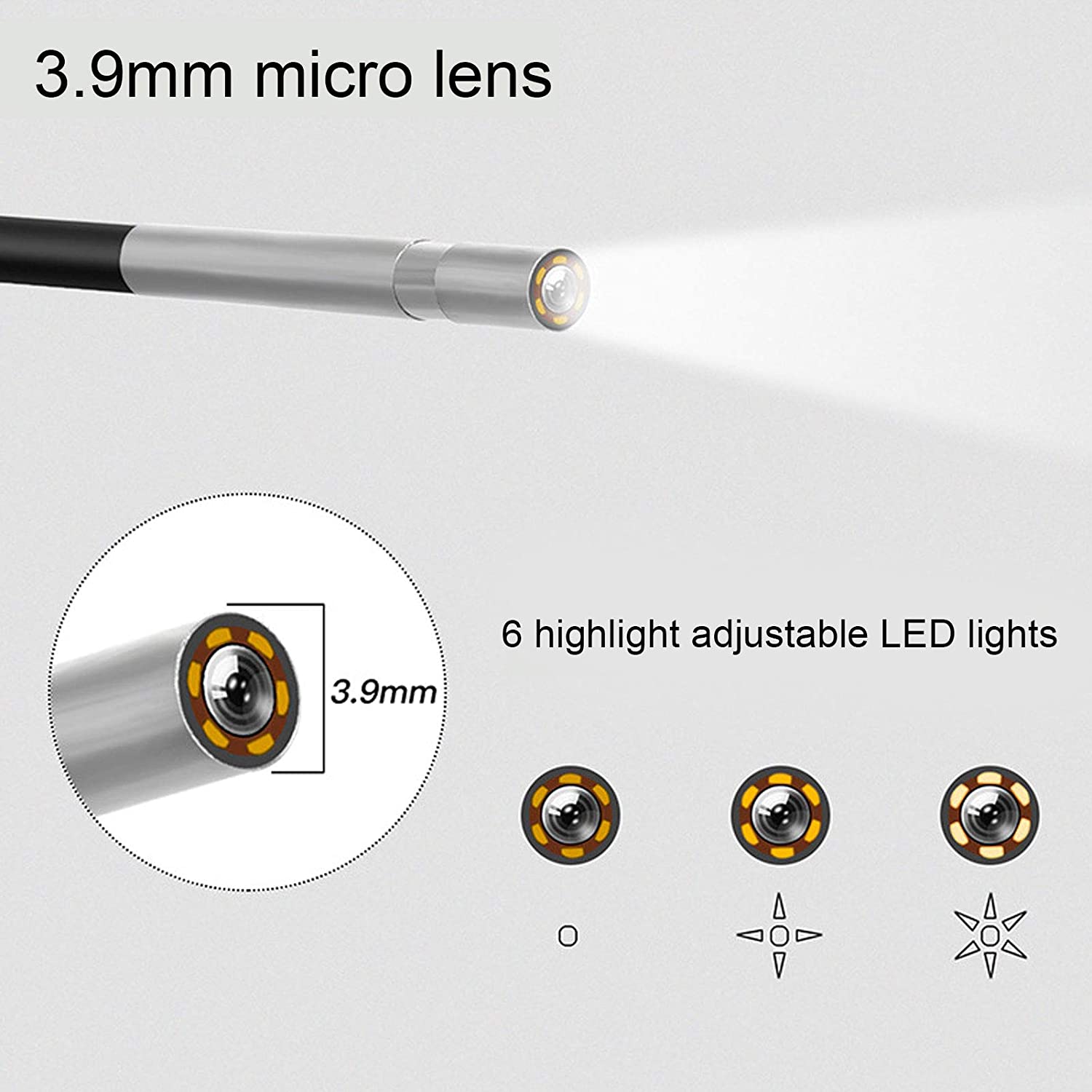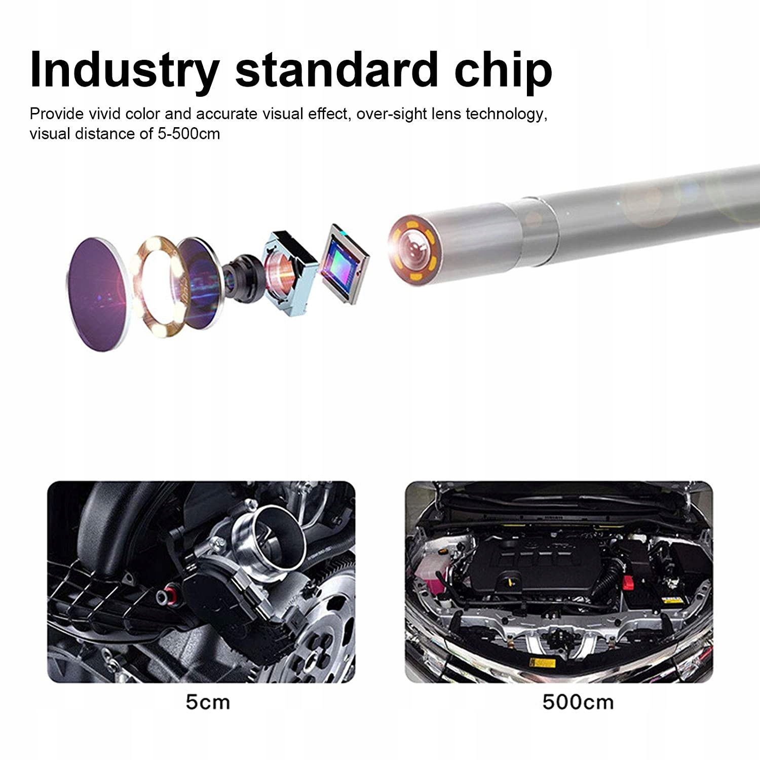 Простий у використанні трубчастий ендоскоп має бездротове підключення, яке є простим у використанні. Просто завантажте та встановіть сумісну програму на свій пристрій, підключіться до смартфону через Wi-Fi і запустіть програму, щоб почати перевірку. Цей бездротовий ендоскоп має вбудовану перезаряджувану літієву батарею ємністю 2600 мАг, яка може безперервно працювати протягом 34 годин. Завдяки мінікамері 39 мм зручно виявляти вузькі місця, до яких важко дістатися. Намистини світлодіодної лампи Промисловий ендоскоп має 6 світлодіодних ламп, яскравість яких регулюється, захищає ваші очі та може чітко виявляти навіть у темряві. Бороскоп HD Detection 1080P дозволяє знімати чітке HD-відео зблизька. Він також оснащений дисплеєм живлення та сигналу, який простий у використанні. Застосування Бездротові ендоскопи підходять для огляду та візуалізації ремонту двигуна автомобіля, ремонту електрики, дренажу, гідравліки машин, у важкодоступних місцях.