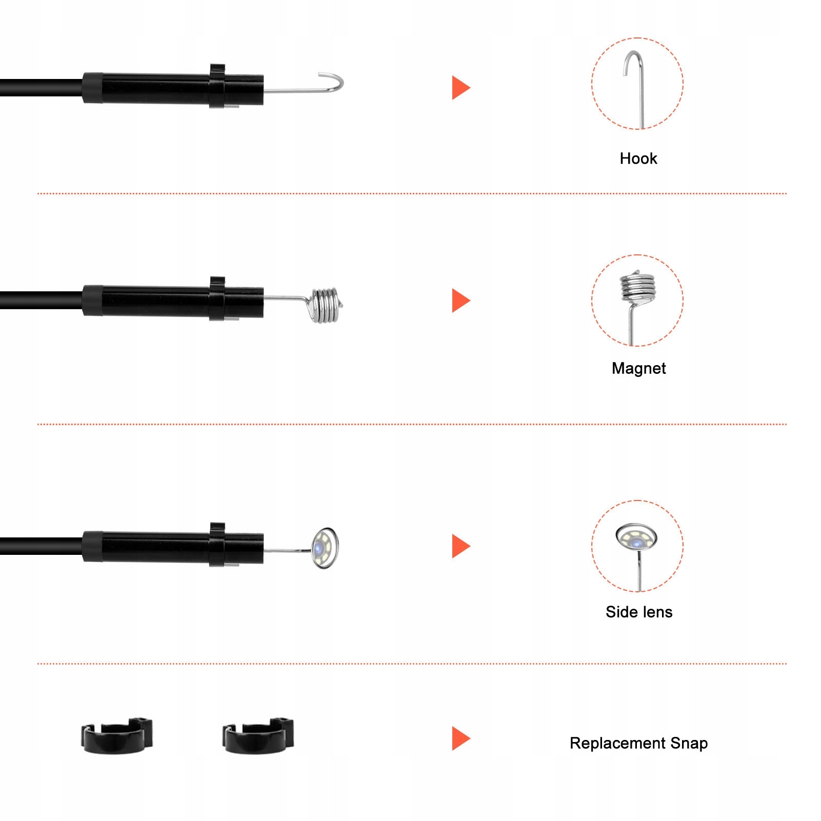 5. Гнучкі кабелі: ця оглядова камера постачається з гнучким кабелем довжиною 5 м, який забезпечує гнучкість, щоб задовольнити різні потреби.