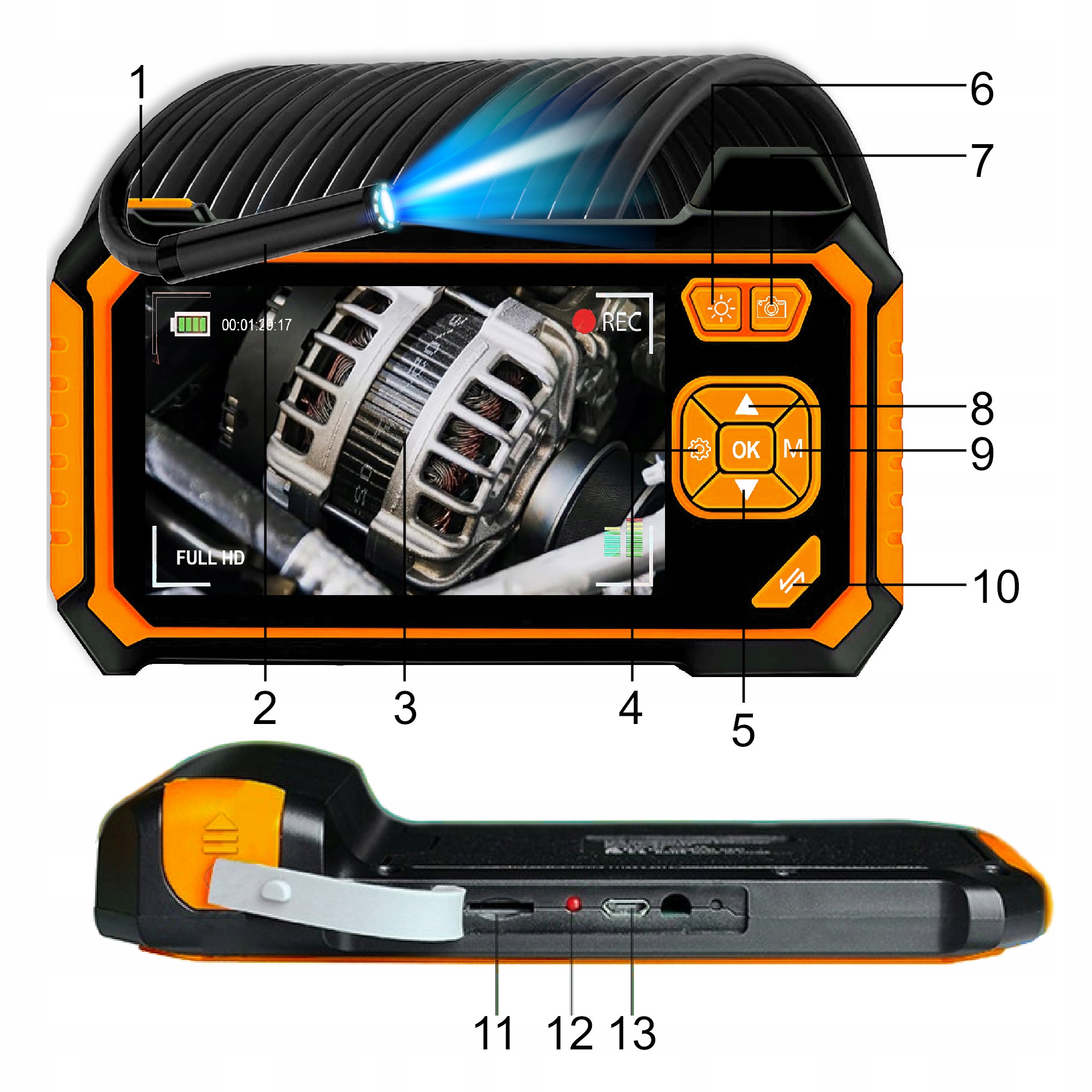 ЕНДОСКОПНА КАМЕРА ДЛЯ ОГЛЯДУ 5M FULL HD LCD 4.3" USB ЕНДОСКОПІЧНА ВОДОНЕПРОХОДНА