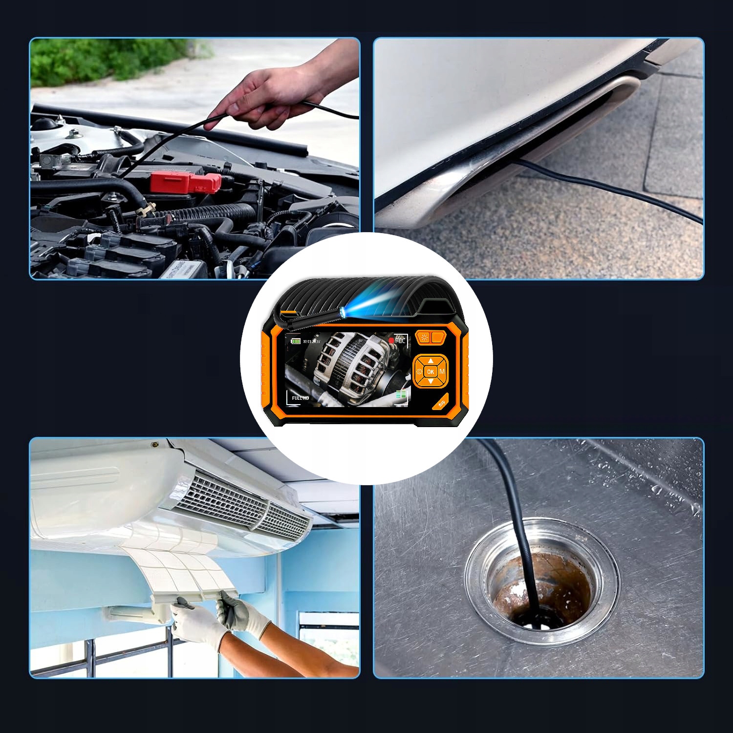 Камера ідеально підходить для застосування в автомобілях, перевірки труб і багатьох інших ситуацій, коли необхідно оглянути важкодоступні місця. Камера економить не лише час, але й гроші.