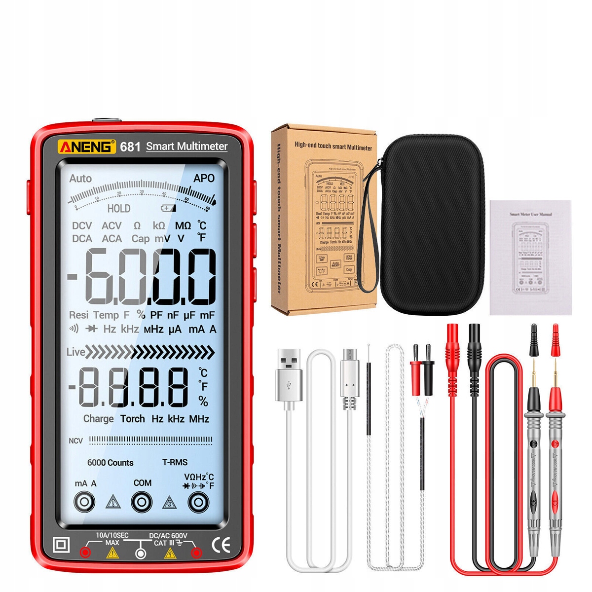 ✅ тестер схильної функції: включаючи вимірювальні функції напруги змінного/постійного струму, струму змінного струму/постійного струму, опір, ємність, температуру, частоту, діод, перемикання/вимкнення, провід з нульовим вогнем тощо. 6000 числа. Дисплей, з функцією зупинки даних, ви можете чітко прочитати вимірюване значення в темному середовищі.