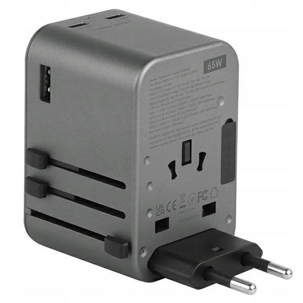 Подорожуйте легко, завантажуючи свої пристрої з максимальною потужністю. TravelWorld Gan65 - це не лише адаптер - це впевнено, що ви завжди будете живити на ходу. Нехай ваші пристрої працюють так, як слід, незалежно від місця у світі, завдяки передовій технології та надійній конструкції.
