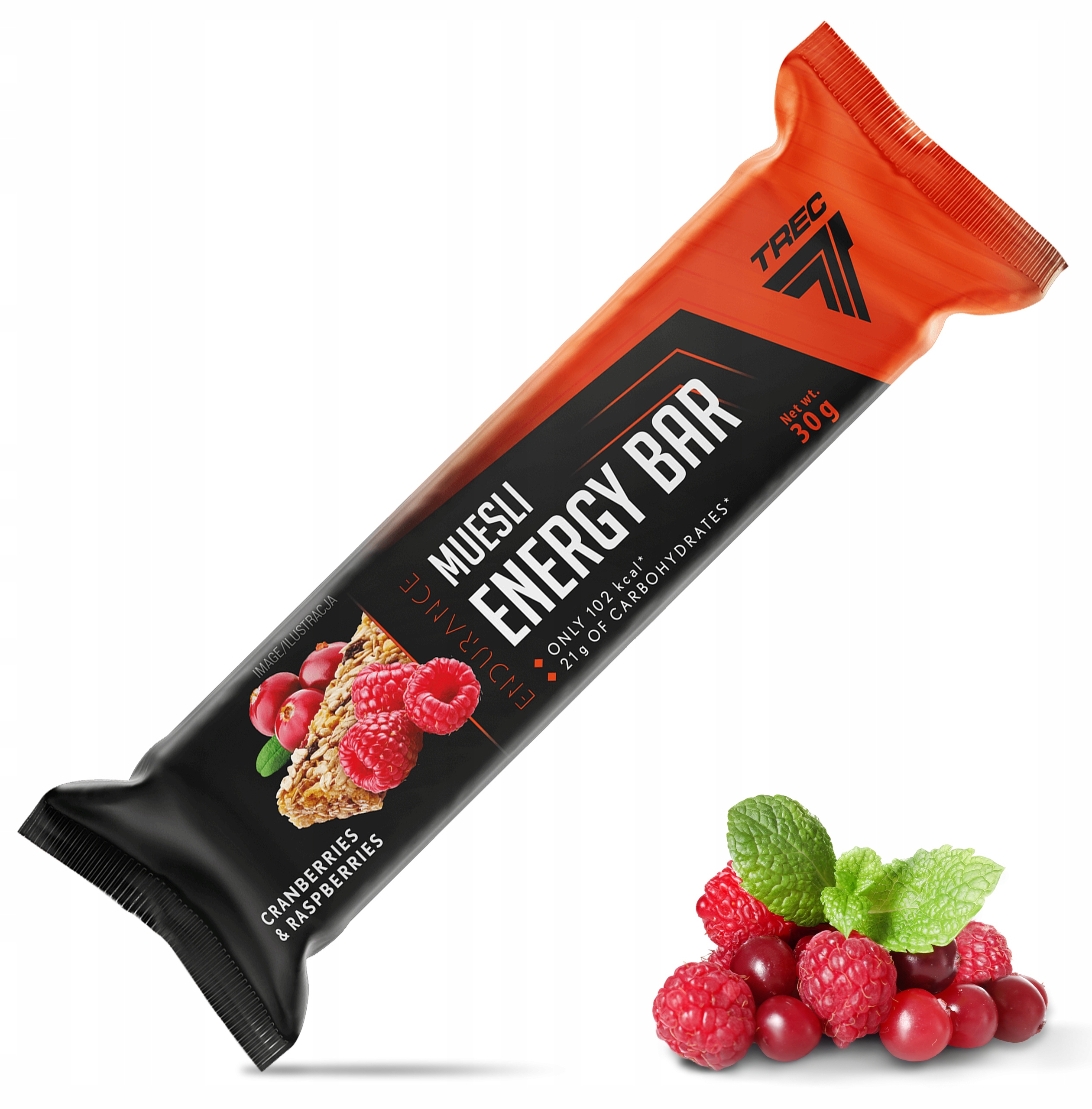 ЕНЕРГЕТИЧНИЙ БАТОНЧИК TREC МЮСЛІ ЖУРАВЛИНА МАЛИНА 30г БЕЗ ПАЛЬМОВОЇ ОЛІЇ