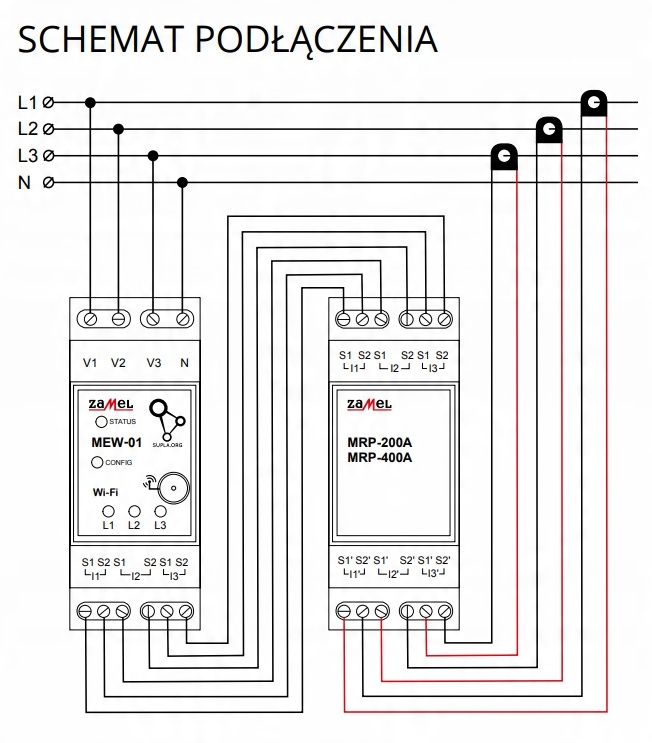 MEW-01 MRP -це версія монітора електроенергії Wi-Fi 3F+N, яка призначена для використання з аксесуарами MRP-200A та MRP-400A. Він використовується там, де необхідно розширити діапазон вимірювання порівняно зі стандартним 3x 100 a.