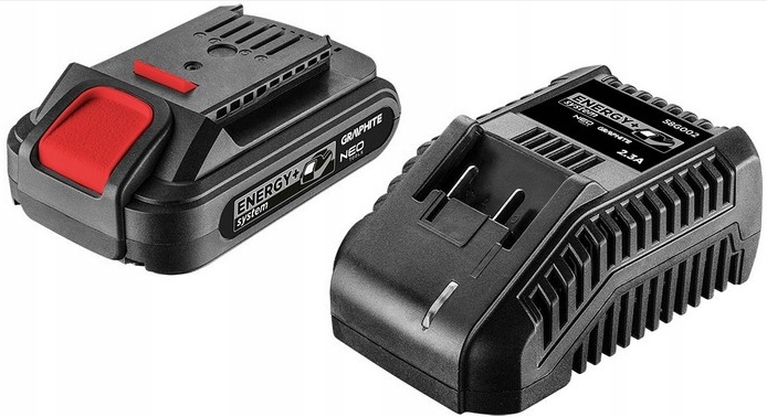 Набір Energy+: батарея ємністю 2 Ач із зарядним пристроєм 58GE131 від GRAPHITE складається з аксесуарів сучасної серії батарей Energy+. Літій-іонний акумулятор 2 Ah 18 V 58G001 і зарядний пристрій 2,3 A 58G002 сумісні з усіма електроінструментами Energy+ GRAPHITE і NEO. Вони гарантують зарядку без ризику втрати ємності. Вони мають індикатор заряду та електронну систему контролю температури та струму під час заряду та розряду. Акумулятор і зарядний пристрій мають сертифікат CE. Вони добре працюватимуть як у професійних майстернях, так і в майстернях DIY.