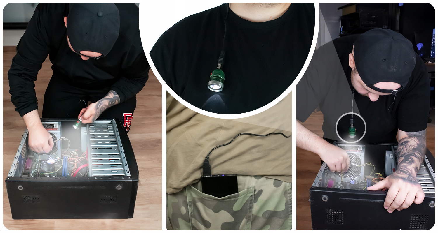 Просто підключіть ліхтарик до Powerbank за допомогою кабелю та адаптера, і ви створите інструмент, який легко освітлюватиме важкодоступні місця та невеликі темні простори! невеликий розмір ліхтарика та гнучкий кабель дозволять вам дістатися до місць, куди було б неможливо за допомогою традиційного ліхтарика.