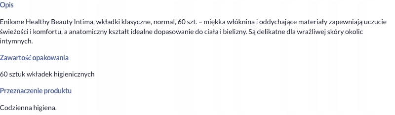 Enilome Health Beauty Intima, класичні вставки, нормальні, 60 шт.