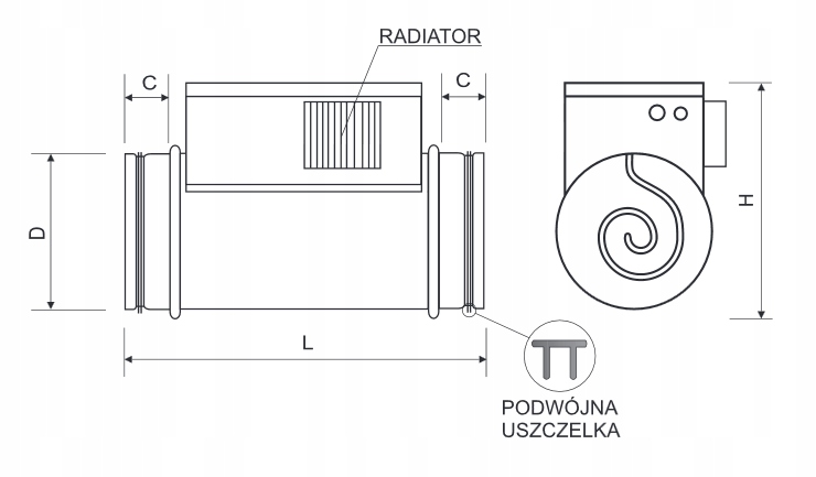 Кожух нагрівачів виготовлений з оцинкованої листової сталі, а підігрів елементи знаходяться в корпусі з листової кислотостійкої сталі. З'єднувальні патрубки оснащені подвійними гумовими ущільнювачами. Корпус нагрівача має з’єднувальну коробку, яка містить клемну колодку для під’єднання кабелів живлення та керування, обмежувач температури та термовимикач, а також кабельні вводи.