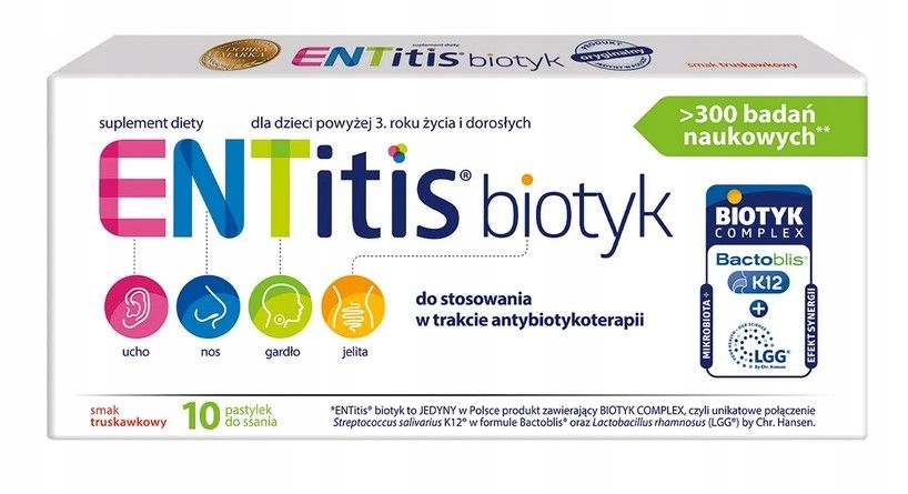 ENTitis Biotic, від 3 років і старше, зі смаком полуниці, 10 таблеток для розсмоктування