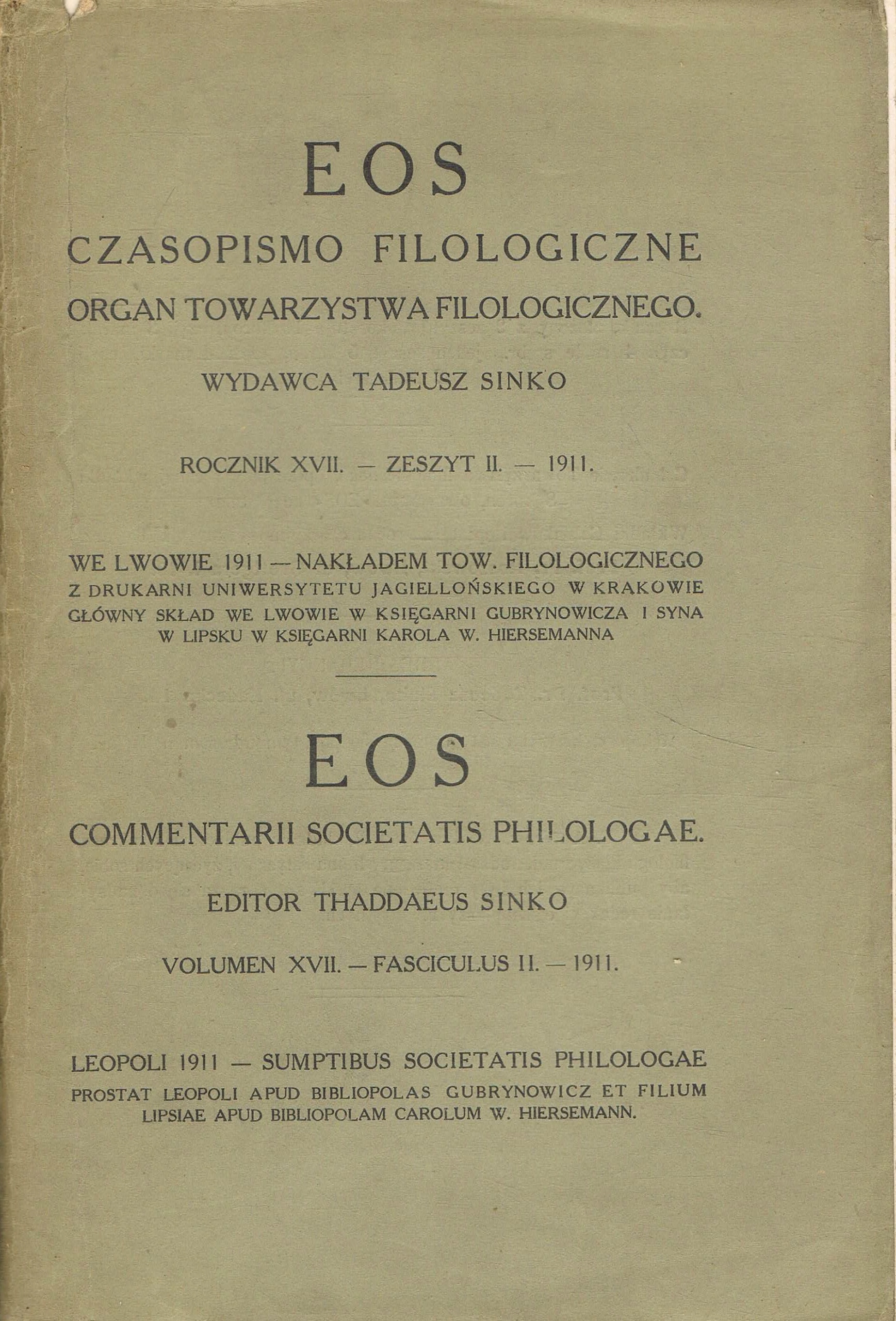 EOS CZASOPISMO FILOLOGICZNE TADEUSZ SINKO ROCZNIK XVII ZESZYT II 1911 ROK