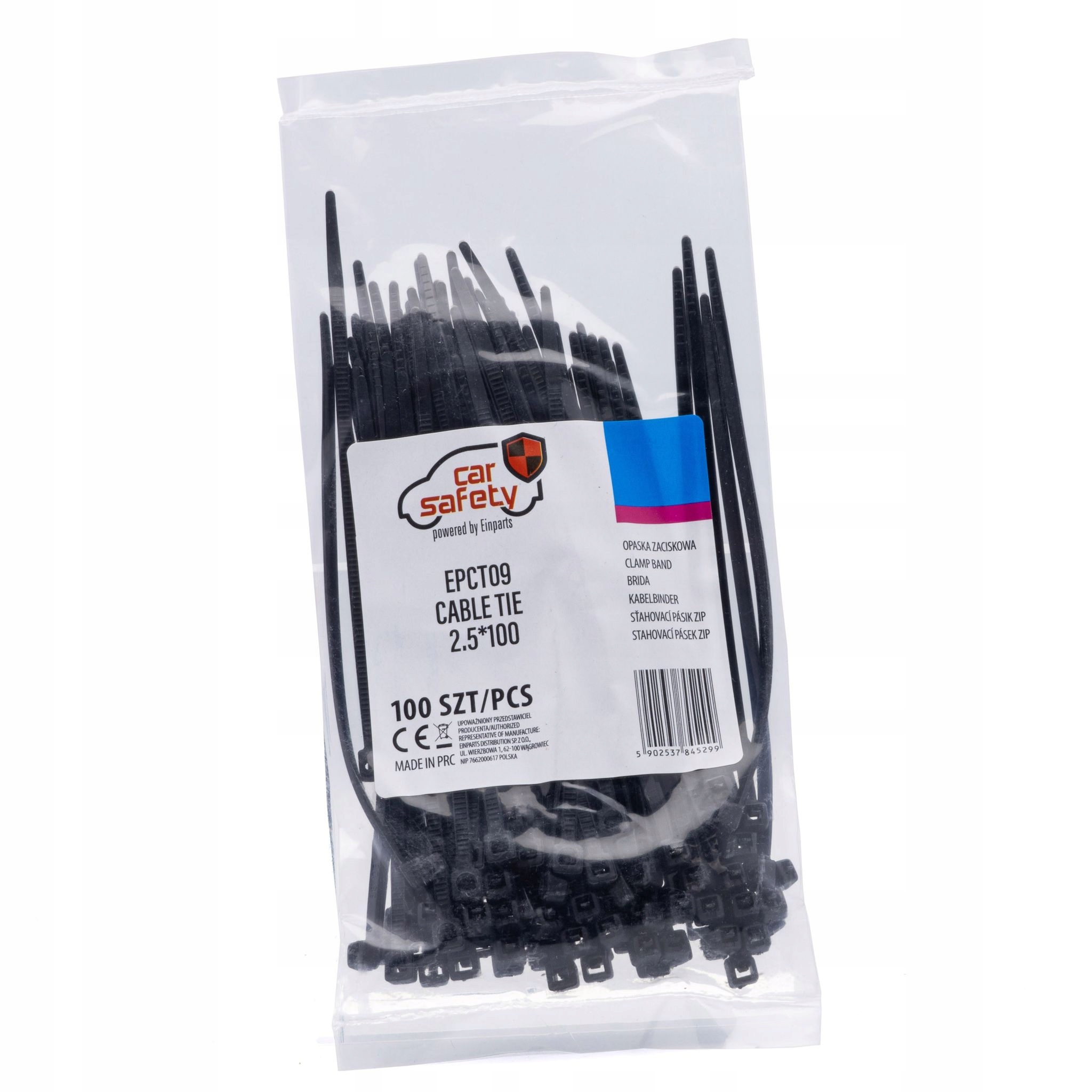 Набір із 100 шт. кабельних стяжок для кабелів, шлангів, трубок тощо. Кабельні стяжки CARSAFETY відрізняються підвищеною стійкістю до розриву та погодних умов (включаючи УФ-випромінювання). Стрічки міцні та стійкі до пошкоджень, жиру та масла. Гладке тіло ремінців забезпечує їх високу гнучкість.СПЕЦИФІКАЦІЯ:Кількість: 100 шт. Довжина: 100 мм Ширина: 2,5 мм Колір: чорний