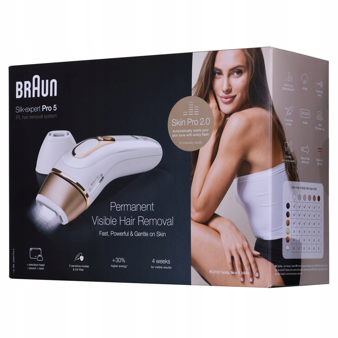 Braun Silk·expert Pro 5 — найкращий IPL від Braun. Це не пристрій для лазерної епіляції. Натомість у ньому використовується передова технологія IPL, яка забезпечує до 6 місяців гладкої шкіри в домашніх умовах із видимим зменшенням волосся лише через 4 тижні (зменшення волосся на 74% після 12 щотижневих процедур – разом для бікіні, ніг і пахв). Індивідуальні результати можуть відрізнятися). Сенсор Skin pro 2.0 (SensoAdaptTM) автоматично адаптується до тону вашої шкіри та оптимізує потужність для ідеального балансу між швидкими результатами та ніжністю до шкіри. Два налаштування чутливості забезпечують приємний догляд за шкірою. До 125 спалахів на хвилину означає менше пропущених ділянок, коли ви ковзаєте по шкірі.