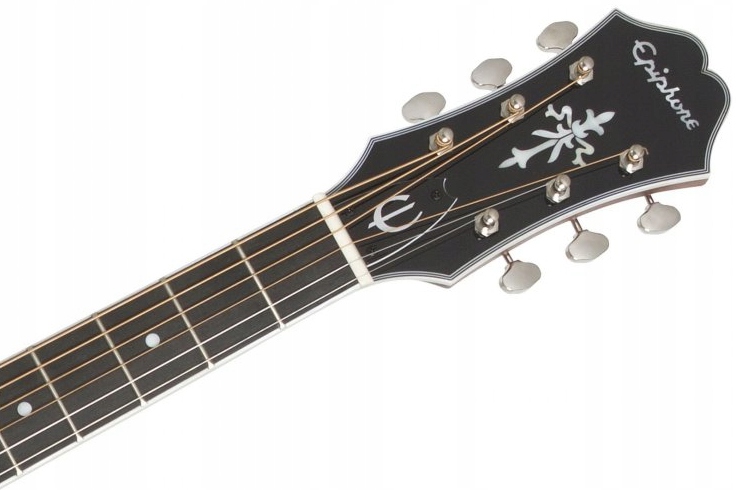 - Головна бабка: похила лопатка; Прорізний класичний стиль; Логотип Pearloid "Epiphone"