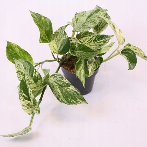 epipremnum 'Marble Queen' - надзвичайно декоративна рослина альпінізму, відома своїм красиво кольоровим, мармуровим листям. Це різноманітність золотистого епіпремуму (Epipremnum aureum), але відрізняється яскравим, білим та кремовим кольором. Листя мають форму, що формує серце, вони злегка складені. Він росте досить швидко, вдома він росте до 4-5 метрів. Варто зазначити, що Epipremnum має можливість очистити повітря.
