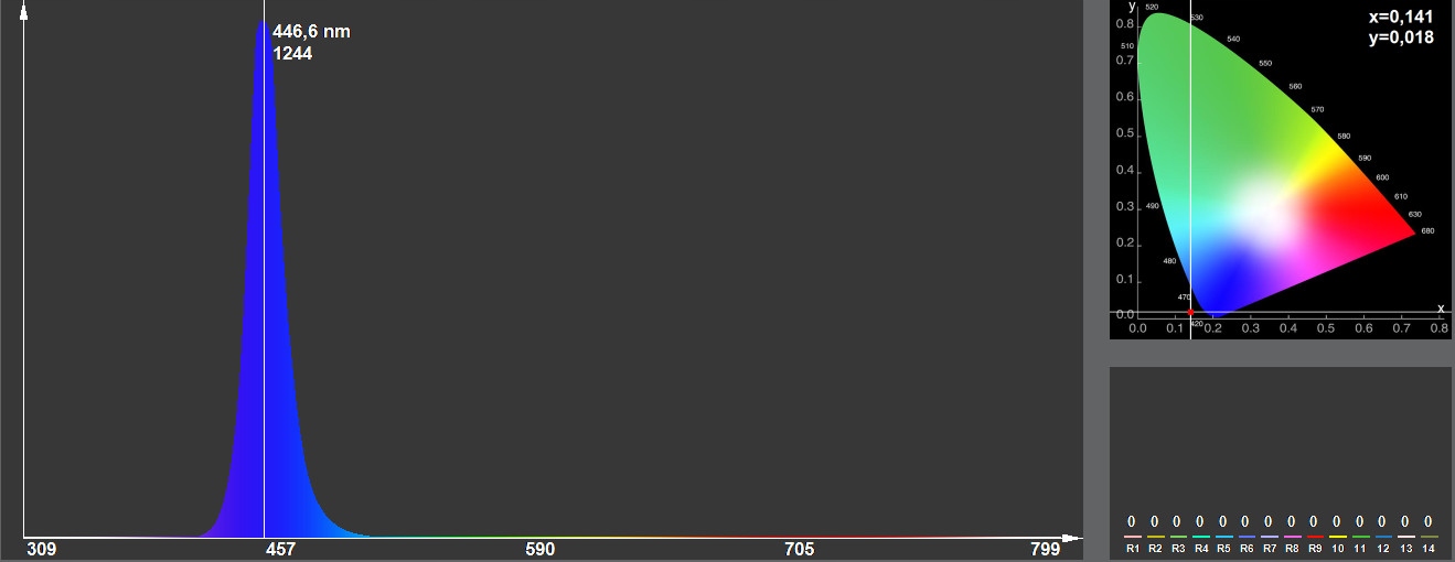 - чіп - Epistar ES-CABLV45P (InGaN Venus Blue LED Chip)