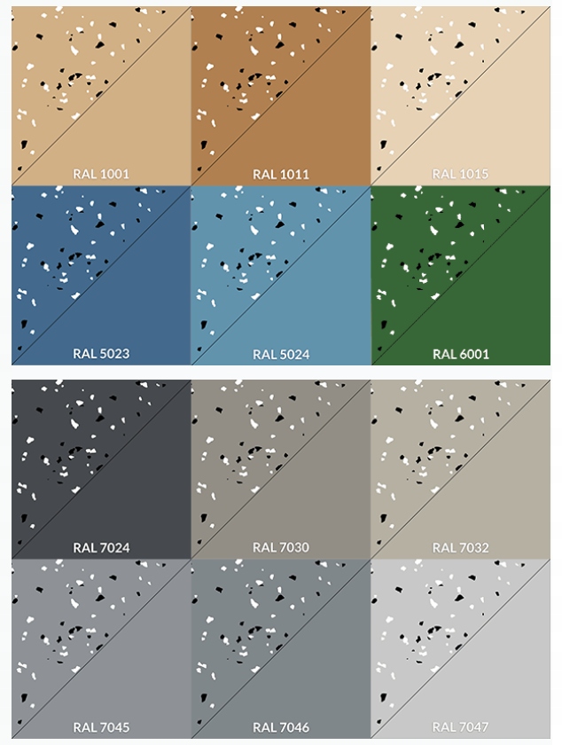 , RAL: 1001, 1011, 3009, 6021, 7001, 7030, 7032, 7040, 704, 704, 704, 704, 704, 704, 704, 704, 704, 704, 704, 704, 704, 704, 704, 704, 704, 704, 704, 704, 704, 704, 704, 704, 704, 704, 704, 704, 704, 704, 704, 704, 704, 704, 704, 704 7045, 7045, 7045, 7045, 7045, 7045, 7045, 7045, 7045, 7045 7047, 1021,1015, 6001, 6011, 7035, 8017, 9003, 9005, 5024, 3001, 5023, 7024, 7038 <