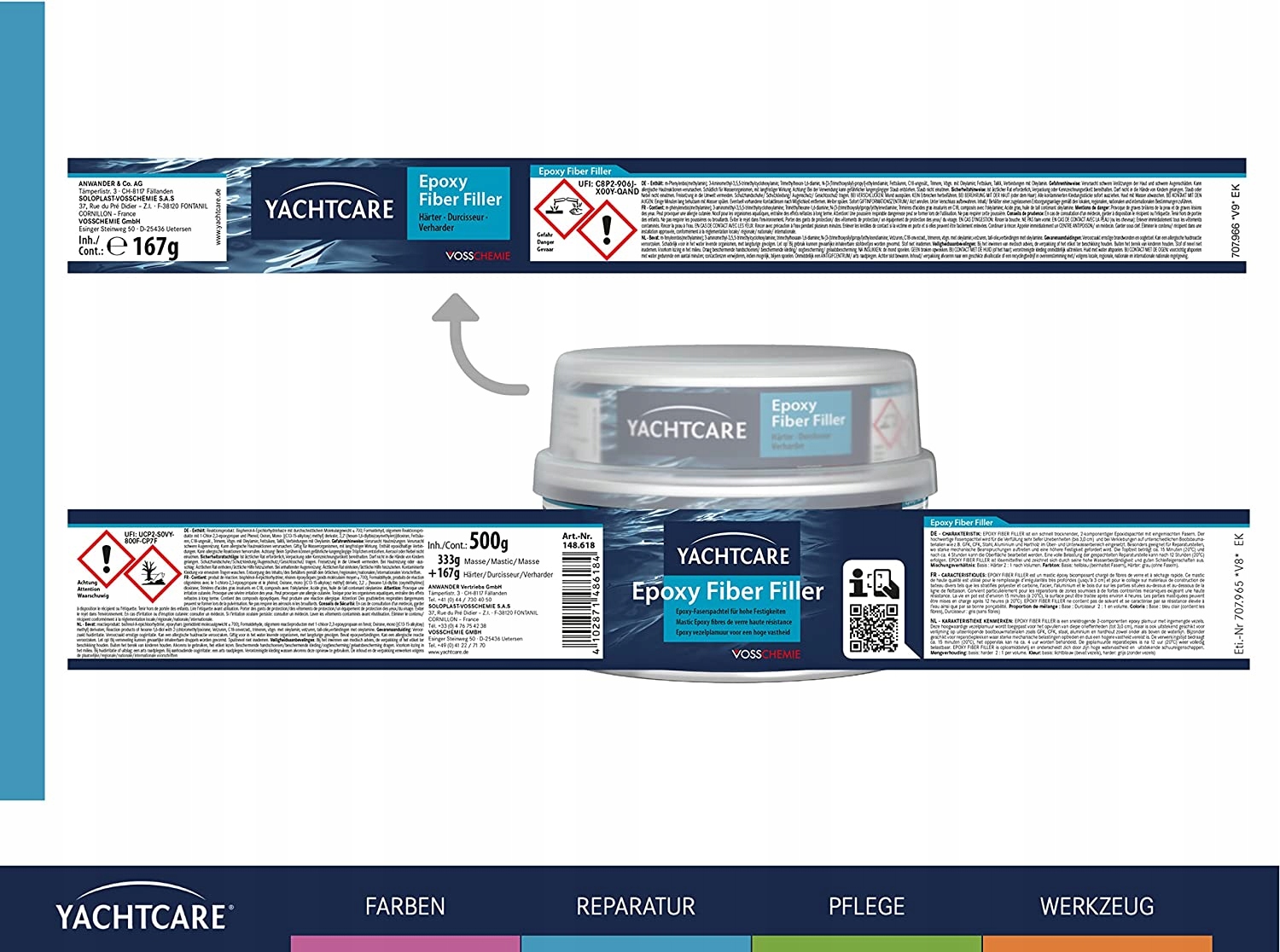 EPOXY FIBER FILLER особливо підходить як композитний матеріал для заповнення глибоких нерівностей і склеювання скловолокна, вуглепластику, сталі, алюмінію та твердої деревини. Застосовується для всіх застосувань, які вимагають механічної міцності, високої міцності та відмінної водостійкості. Виникаючі напруги і сили розтягування краще поглинаються і рівномірно передаються спеціальними волокнами. Підкладки зі скловолокна, сталі та алюмінію необхідно обробити 2-компонентною епоксидною ґрунтовкою, такою як HEMPEL LIGHT PRIMER.