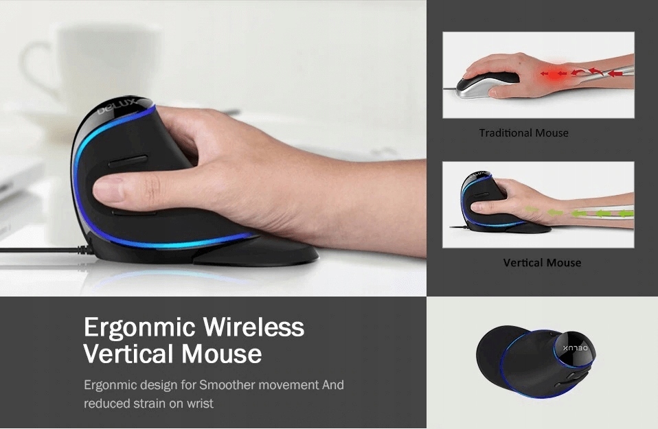 Вертикальна миша Delux M618 Plus була створена через небезпеку для здоров’я традиційних мишей і поєднує в собі: