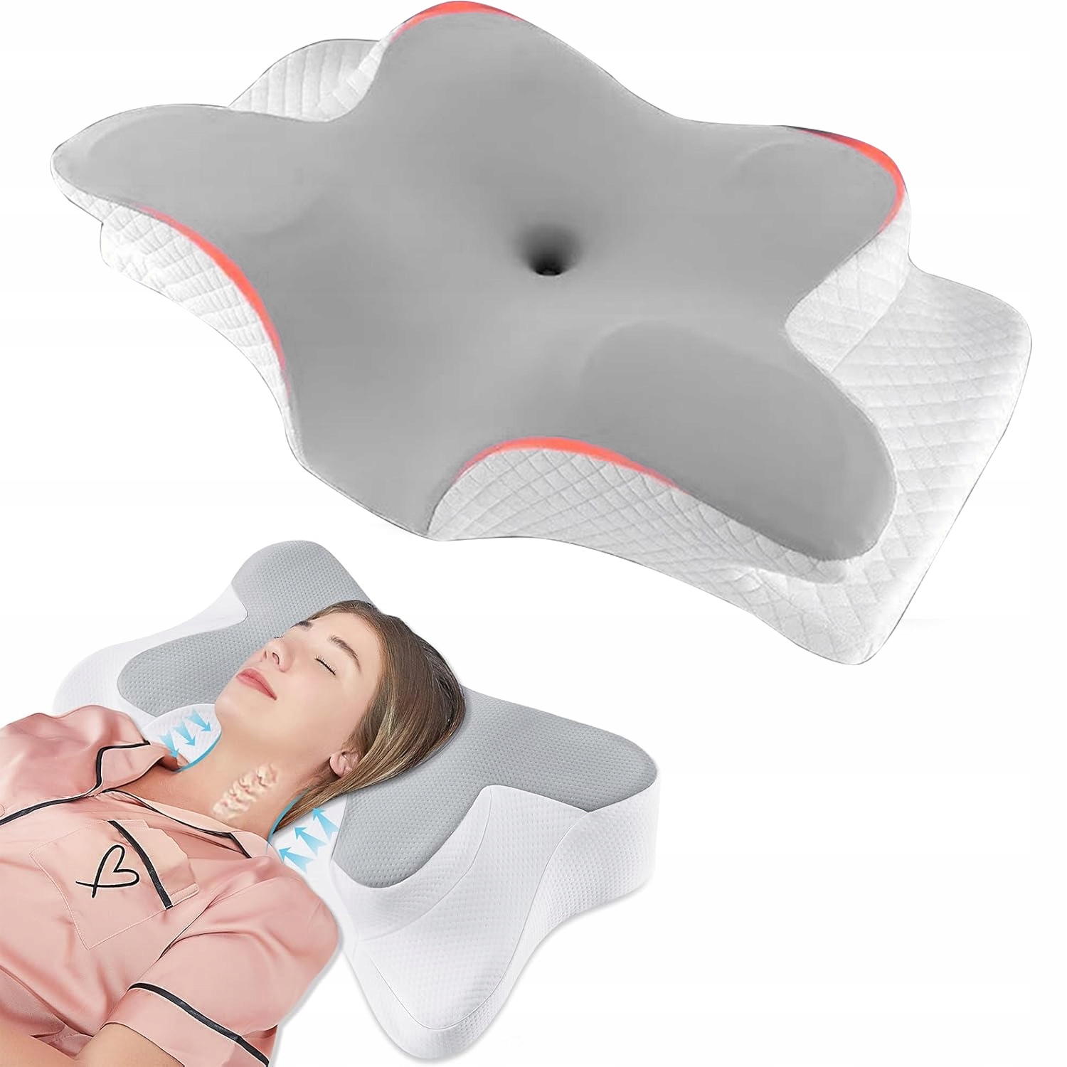 ⭐⭐⭐ Подушка-метелик із піни пам’яті, зручна подушка, підтримуюча подушка для шиї, ергономічна подушка для тих, хто спить на боці (біла та сіра)⭐⭐⭐