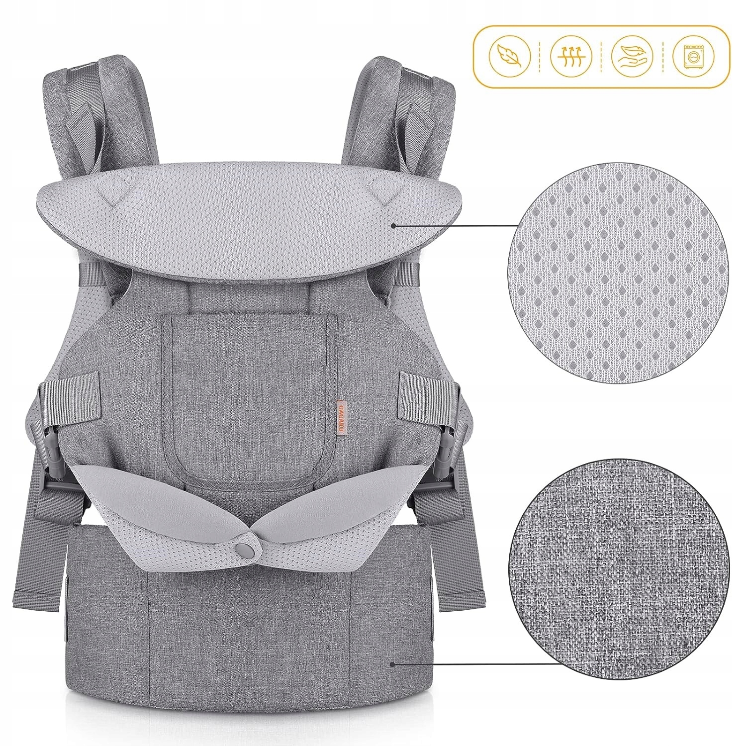 - Портативний дизайн: GAGAKU Baby Carrier розроблено з передніми та поясними кишенями для помістіть серветки, нагрудники, соски, мобільні телефони чи ключі, щоб легко звільнити руки.