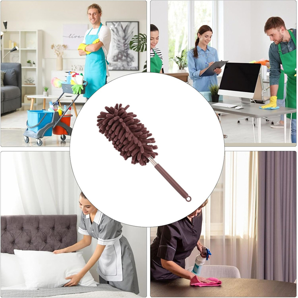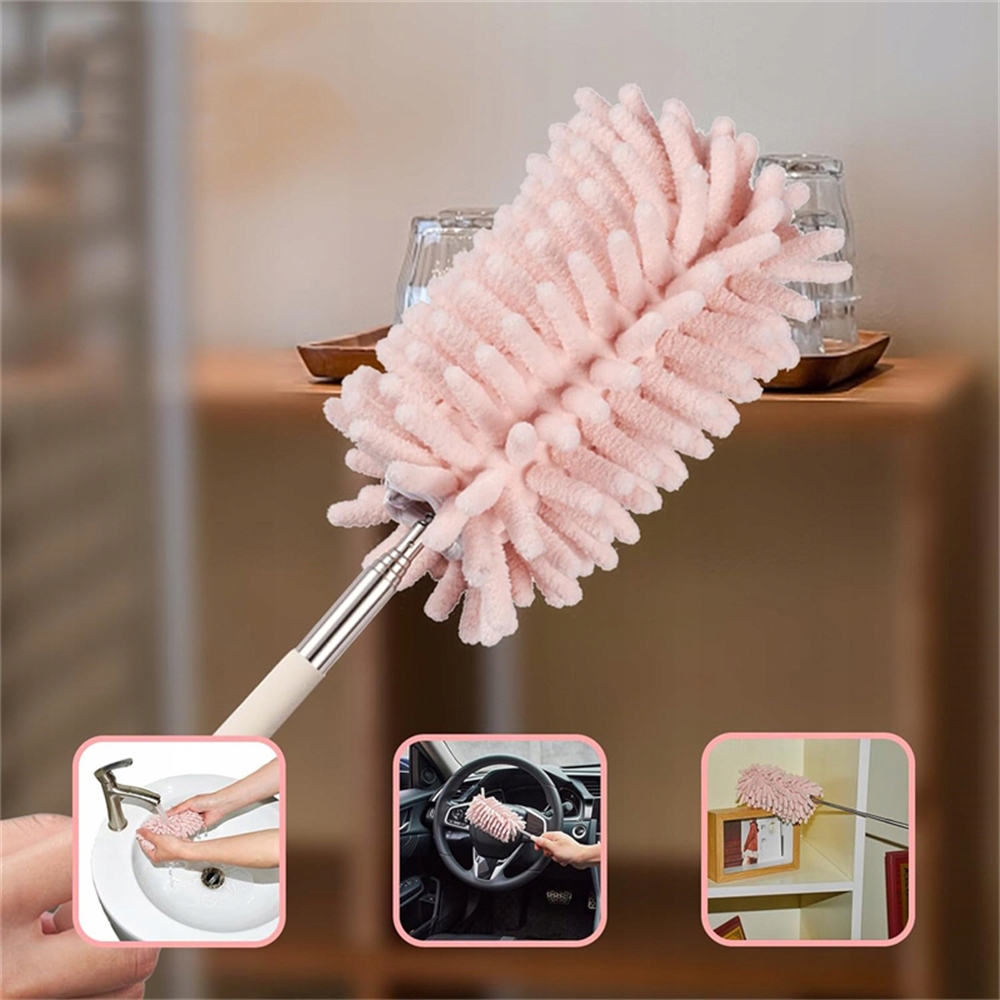 Матеріал і розмір: Телескопічний пил з головою з 360-градусною гнучкою ручною щіткою. Обробляйте кільце для відходів, пил, виготовлений із супер м'якого мікрофібра.