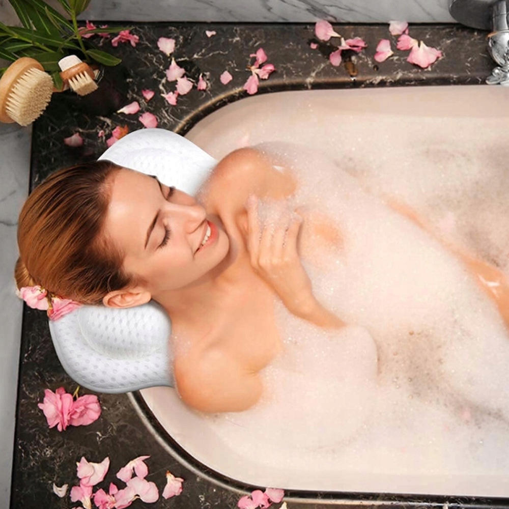 🛁 Ергономічний 4D-дизайн: Bath Pillow є ергономічний дизайн, щоб забезпечити повну підтримку голови, шиї та спини, що може усунути тиск на шию та отримати найкомфортніше відчуття релаксації у ванні.