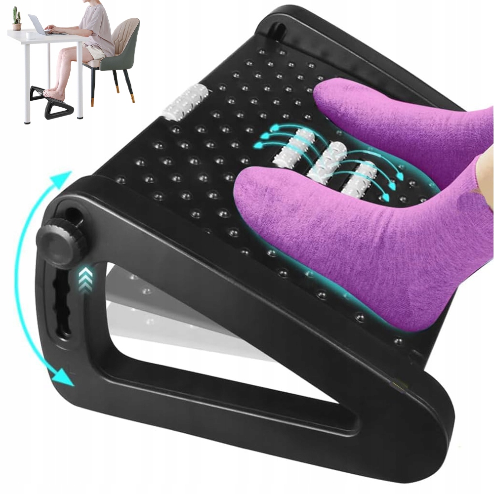 ✅ Цей підставка має текстуровану поверхню та велику підвісну платформу, покриту вкладками та масажними роликами, які допомагають масажувати та стимулювати ноги, а також допомагають розслабити ноги у робочий час.