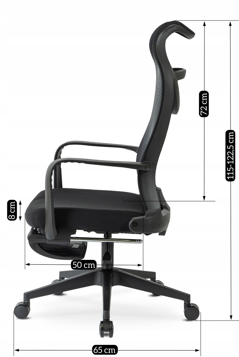 - Висота крісла: 115-122.5 см