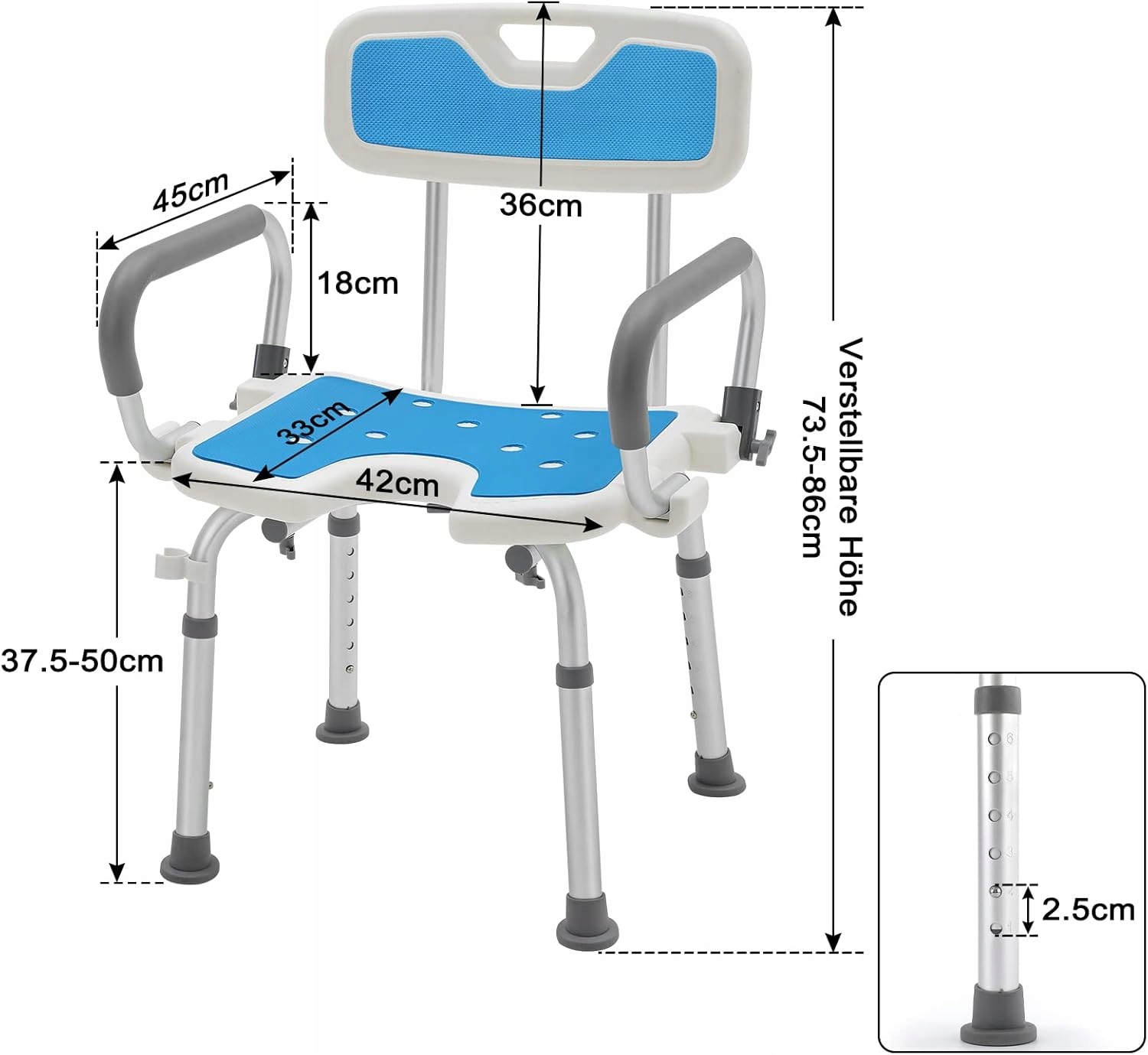 🏡 Крісло для душу зі спинкою та підлокітниками, 4 гумові ніжки, EVA подушка, ергономічний дизайн, регульована висота ❗❗❗