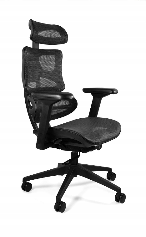 Повітропроникність та добре самопочуття користувача крісла забезпечують елементи, оббиті сіткою: підголівник, спинка та сидіння. Ергономічне крісло також виглядає ефектно завдяки основі з полірованого алюмінію або міцного пластику, завдяки чому воно витримує навантаження до 130 кг.