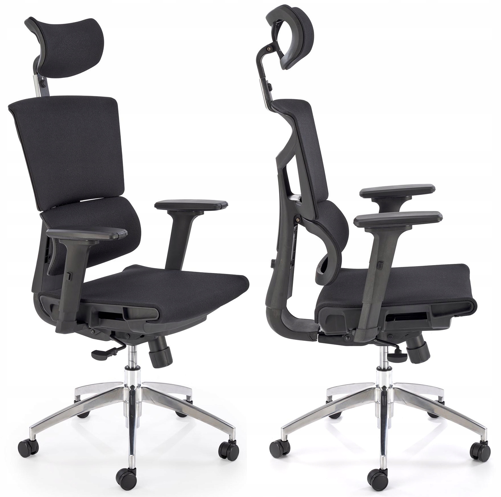 Сучасне, зручне та ергономічне офісне крісло, поворотне з фасонною спинкою. Спинка регулюється по висоті, а підголівник регулюється (вгору-вниз і кут нахилу).