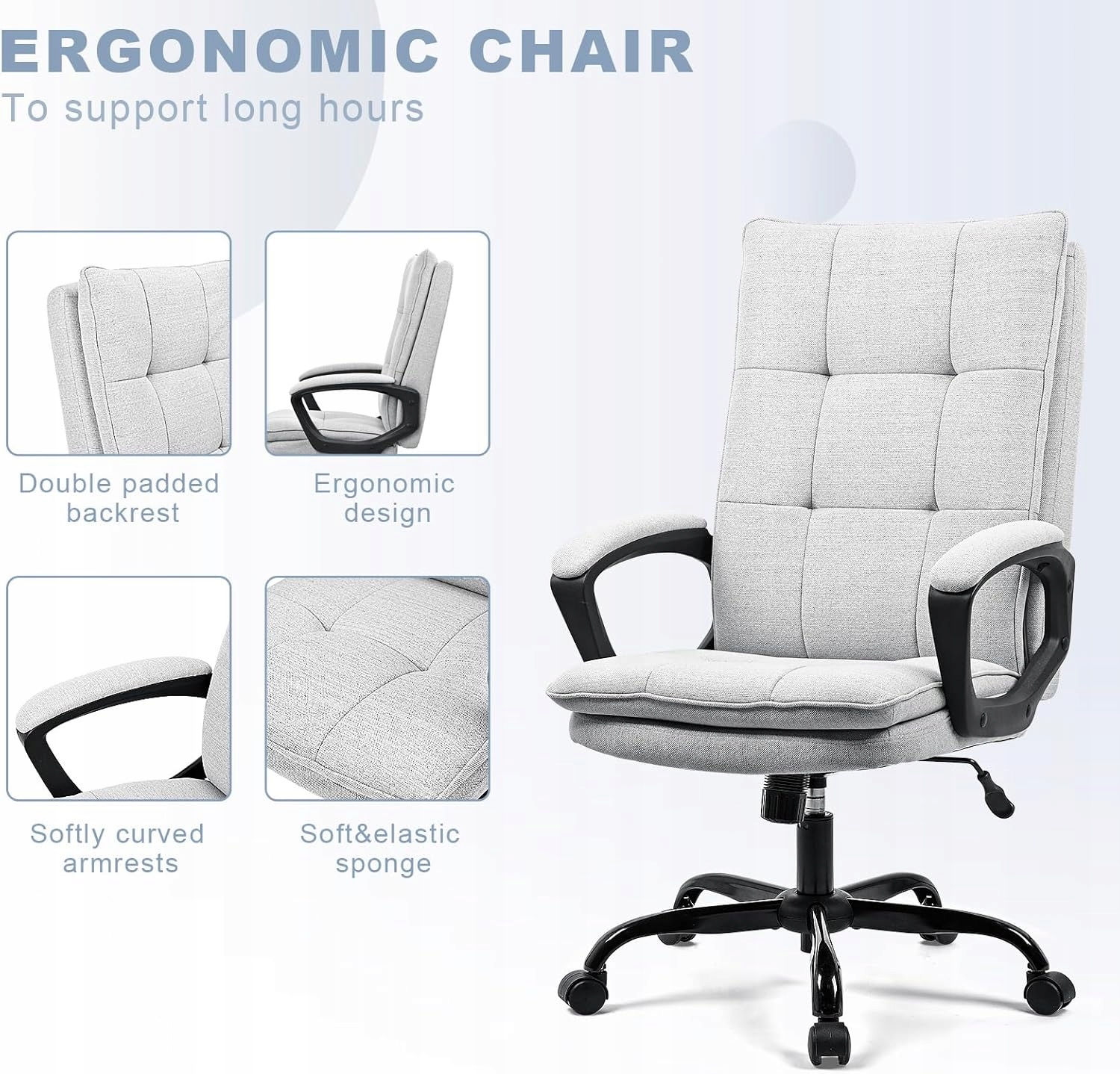 Це офісне крісло сірого кольору від BASETBL характеризується виключно товстим наповнювачем (до 10 см), що забезпечує м'якість і комфорт сидіння. Сидіння, спинка та підлокітники покриті дихаючою тканиною.