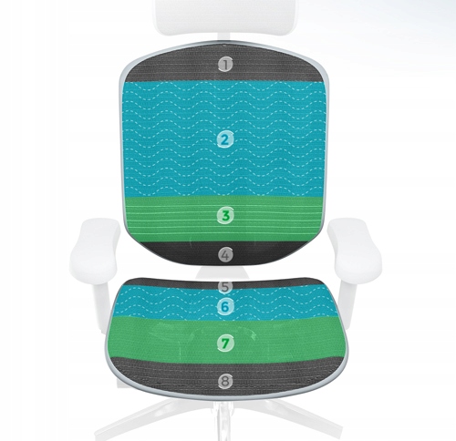 - інноваційна 8-ступінчаста функція згинання передньої частини підлокітника, гарантує підтримку передпліччя під час, наприклад, користування телефоном, гри на консолі або читання книги .