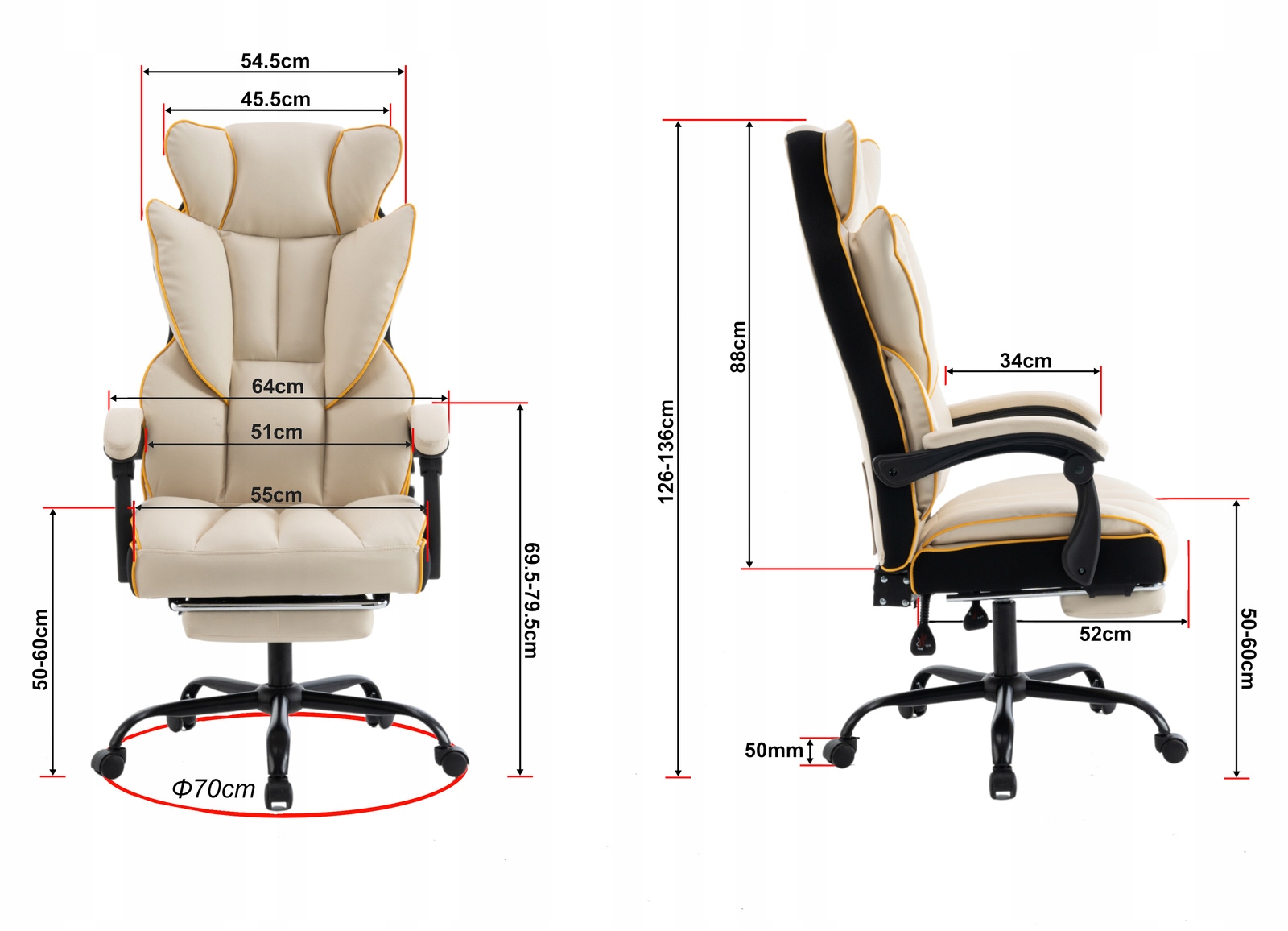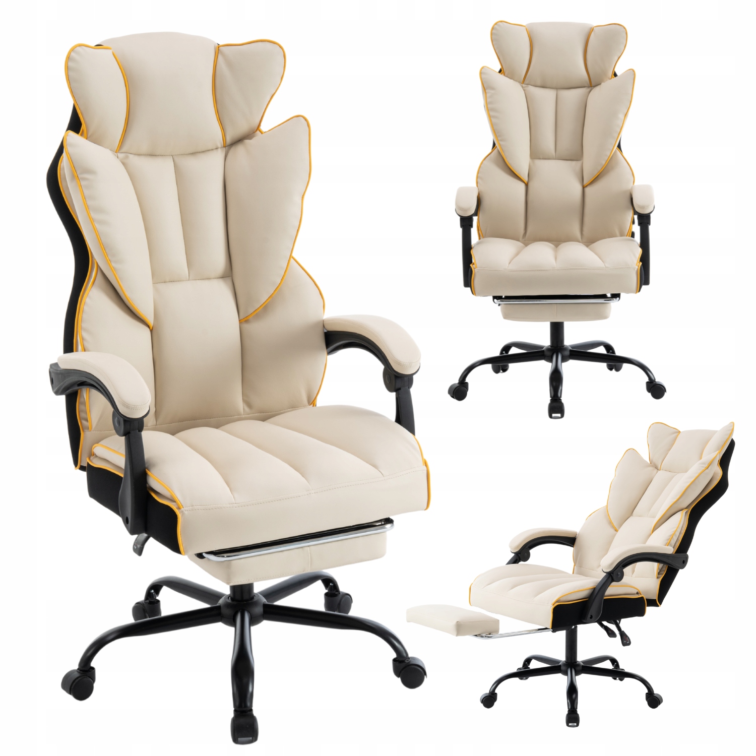 Ергономічне поворотне офісне крісло з підставкою для ніг, бежевий і золотий
