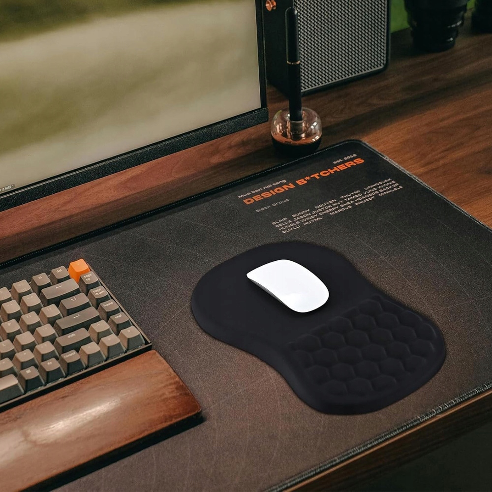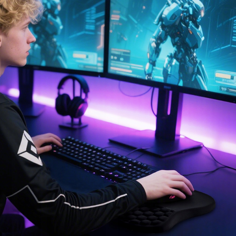 З високоякісним м’яким матеріалом LYCRA та плюшевою піною з ефектом пам’яті цей зручний килимок для миші з підтримкою для зап’ястя створює відчуття, ніби хмара під вашим зап’ястям. Дихаючий матеріал зберігає шкіру прохолодною та сухою навіть під час тривалого використання. Незалежно від того, працюєте ви з електронними таблицями чи граєте в швидкі ігри, цей килимок для миші забезпечує ідеальний баланс між комфортом і продуктивністю.