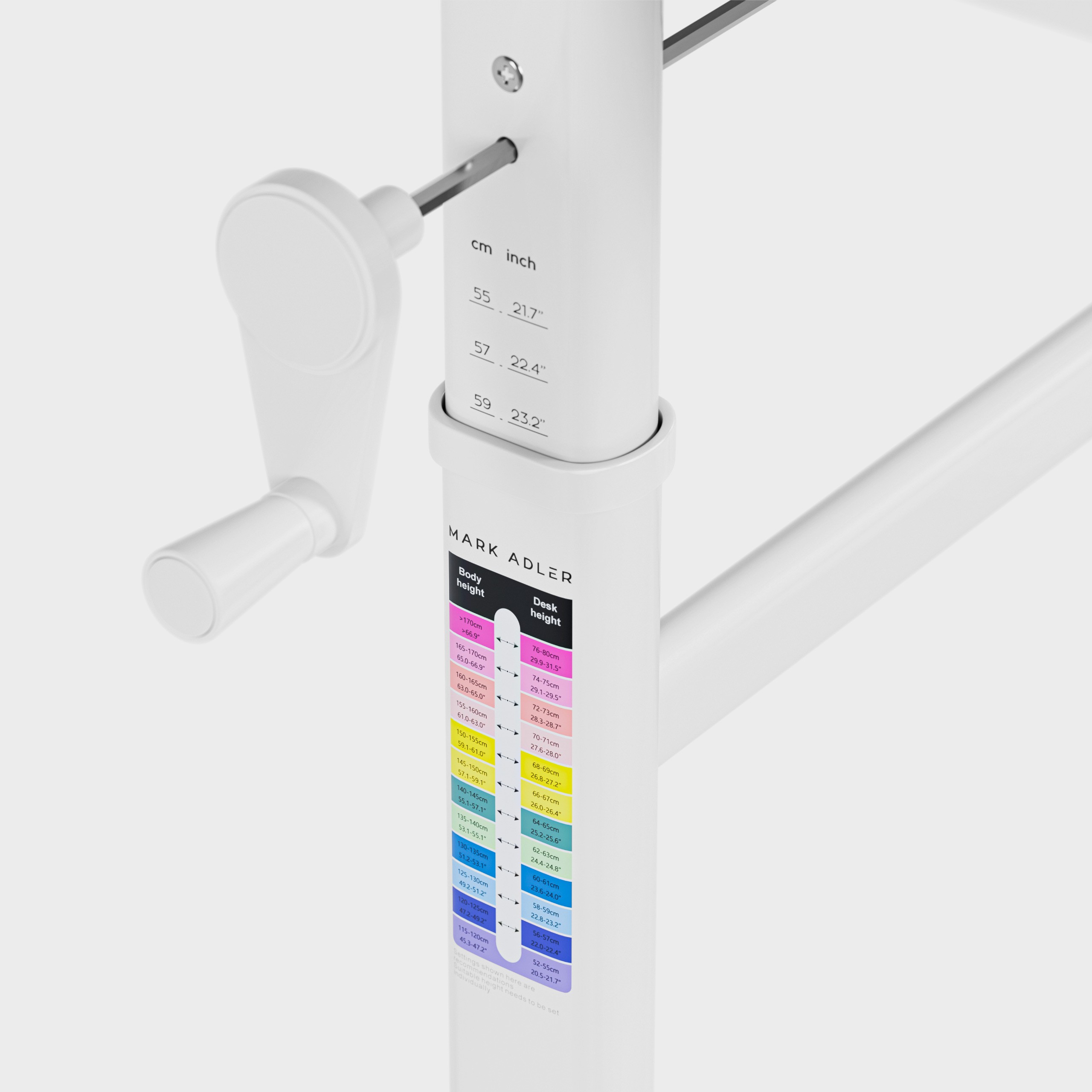Завдяки механізму плавного регулювання висота регулюється швидко та без проблем. Точне налаштування парти під зріст дитини полегшує кольорова шкала, розміщена на ніжці парти.