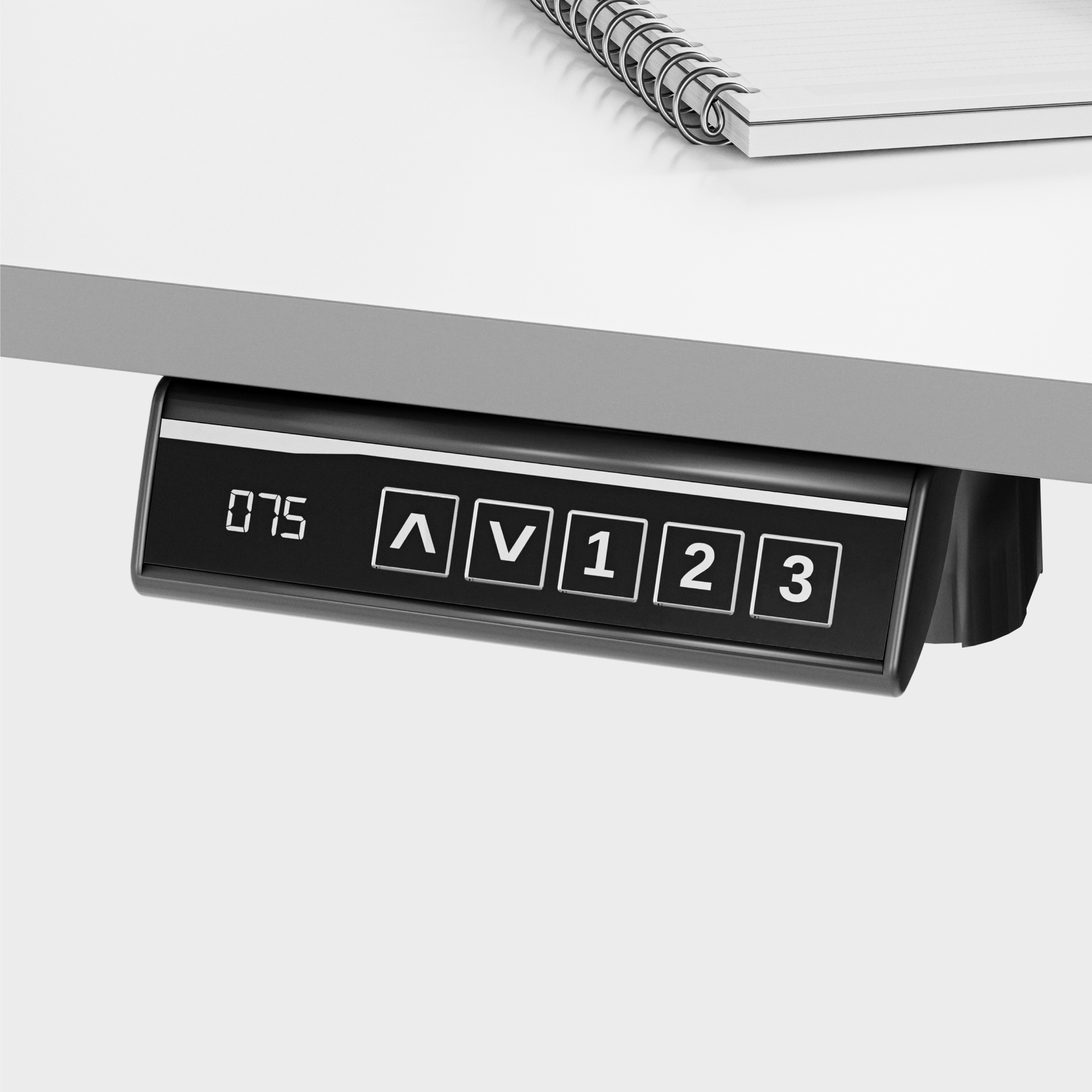 Стіл Study 7.0 оснащено панеллю керування , яка дозволяє плавно та просто регулювати висоту стільниці. Завдяки пам'яті з можливістю збереження 3 налаштувань можна швидко повернутися до улюбленої конфігурації. Це просте та безпечне рішення, яке дозволяє дітям регулювати стіл відповідно до своїх потреб.