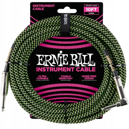 Професійний інструментальний кабель довжиною 3,05 м забезпечує прозорий сигнал з ідеально збалансованими частотами та відсутність шумів у будь-яких умовах. Двопровідна, подвійно екранована конструкція з безкисневої міді. Зовнішня оплетка забезпечує додатковий захист і запобігає сплутуванню. Закінчення кабелю штекером "великий джек" діаметром 6,3 мм (1 х прямий джек, 1 х ламаний джек). Колір кабелю: чорний/зелений, колір вилки: хром.