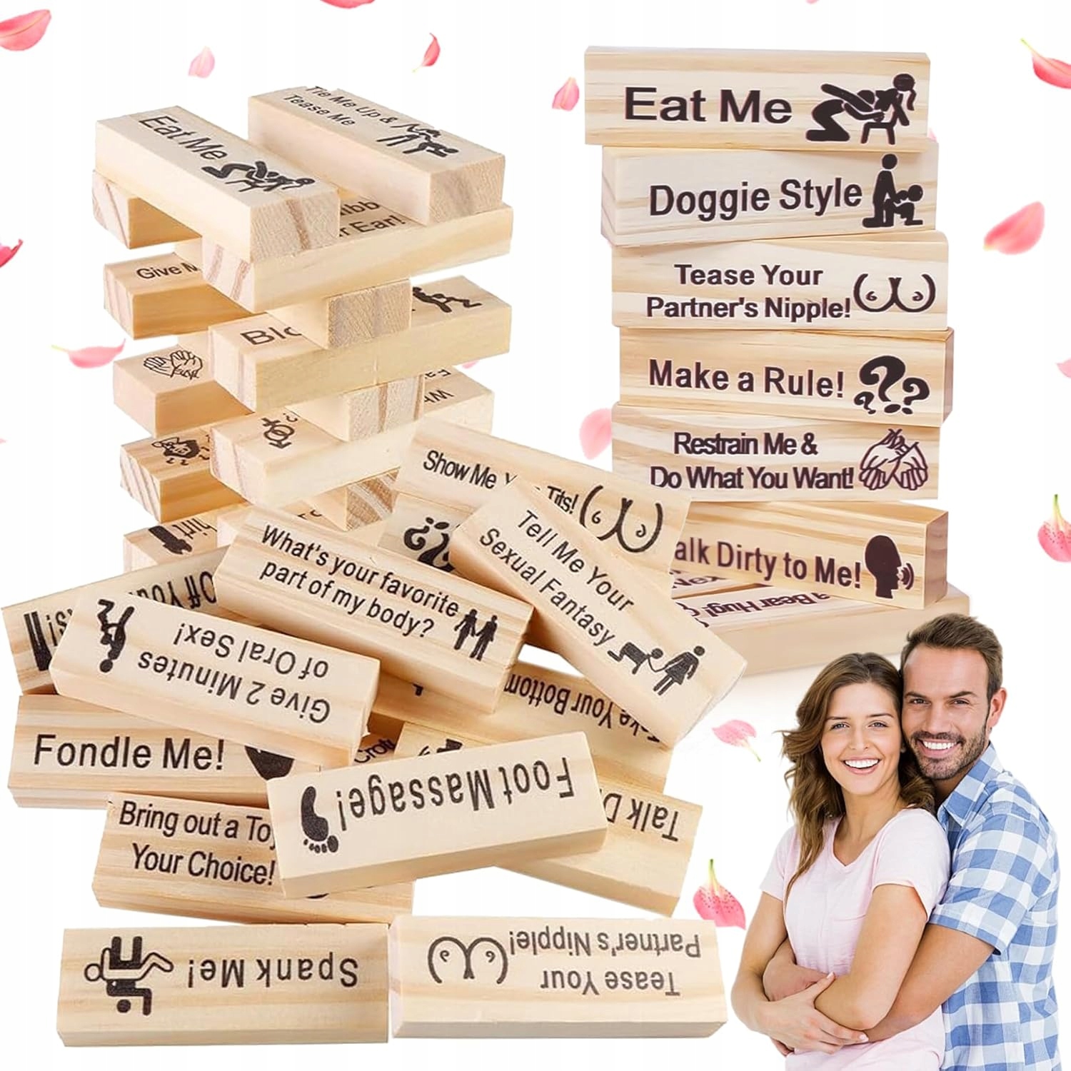 【Високоякісні матеріали】 Ця гра для дорослих була ретельно створена з високоякісних дерев’яних блоків, що робить її довговічною, зносостійкою, стійкою до тріщин і багаторазовою. Він ідеально підходить для дорослих пар і забезпечує веселий і захоплюючий досвід.