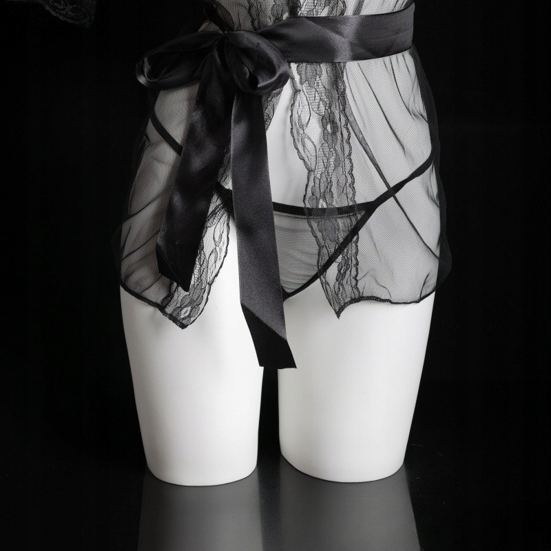 Здивуйте витонченою елегантністю цього прозорого халата, який ідеально поєднує в собі ніжність мережива та чуттєвість прозорого матеріалу. Цей легкий і повітряний халат, оздоблений атласною стрічкою, стане ідеальним вибором для жінок, які хочуть почуватися особливою та жіночною в затишку свого дому.