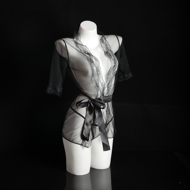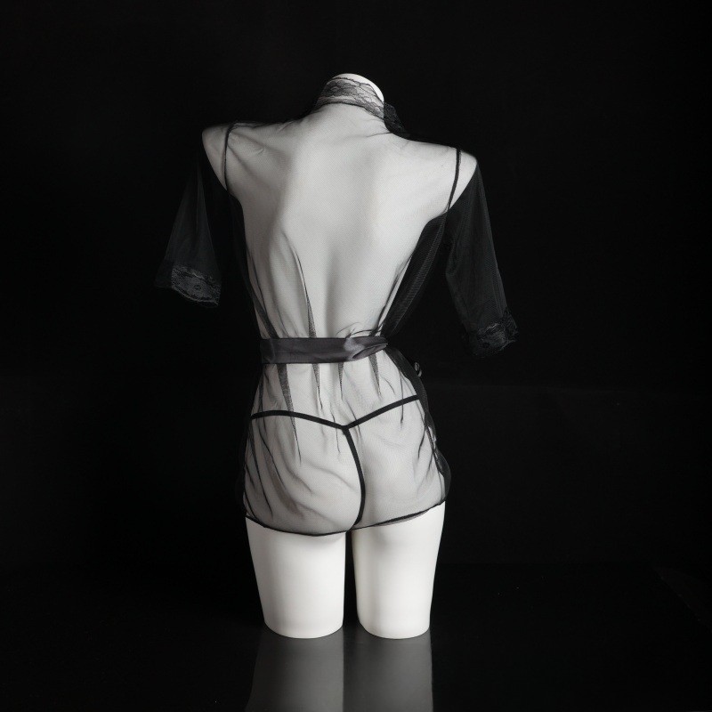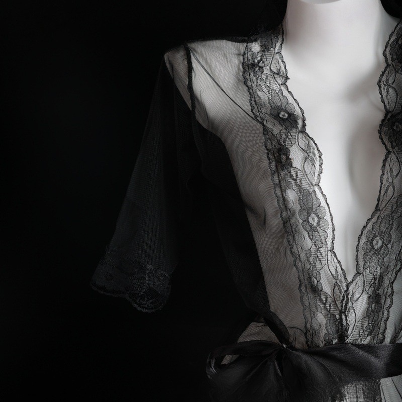 Прозорий халат із мереживом і атласною стрічкою – сексуальна білизна